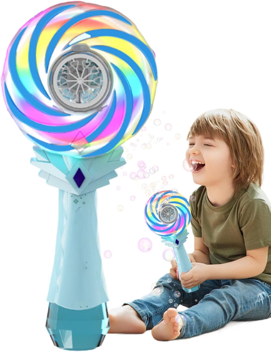 Funzione Continua: Tecnologia motorizzata per produzione bolle automatica e design protettivo che garantisce un utilizzo sicuro per i bambini durante il gioco attivo Gioco Creativo Stimolato: Modello ispirato a mulino a e charme da principessa, questa bacchetta per bolle favorisce esperienze magiche radicate nella creatività fantastica per attività all'aperto Creatore Atmosfera : Deliziati con una display affascinante di luci colorate che si adattano alla musica, portando un'atmosfera sia al gioco indoor che agli eventi all'aperto vivaci Bacchetta Bolle Multisensoriale: Stimola vista e udito con bolle musica e mulino a rotante in design ispirato ai lecca lecca per divertimento interattivo coinvolgente Design Compatto: Grazie all'autonomia prolungata e ricarica USB, questo strumento per bolle migliora eventi all'aperto con prestazioni affidabili in formato portatile e viaggio
