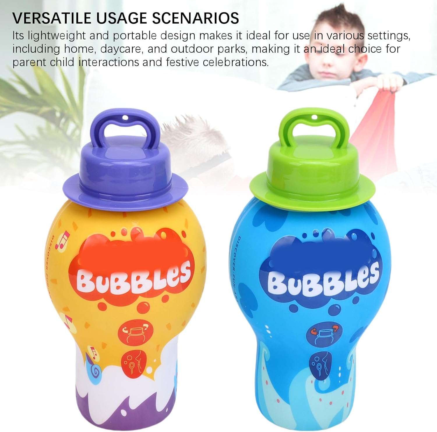 [Design a prova di fuoriuscite] Goditi un tempo di gioco senza preoccupazioni grazie al serbatoio interno sicuro del liquido della nostra bacchetta a che previene le perdite. [Operazione facile] I bambini possono facilmente creare tonnellate di con un'onda delicata, migliorando la coordinazione occhio-mano. [Materiali sicuri] Realizzati con materiali per uso alimentare che garantiscono un gioco delicato per i bambini anche se entrano in con gli occhi. [Promuove il gioco attivo] Le vibranti incoraggiano i bambini a correre e saltare, favorendo l'attività fisica e l'esplorazione. [Uso versatile] Ideale per la casa, l'asilo nido e i parchi all'aperto, rendendo più divertenti le interazioni familiari e le celebrazioni festive.