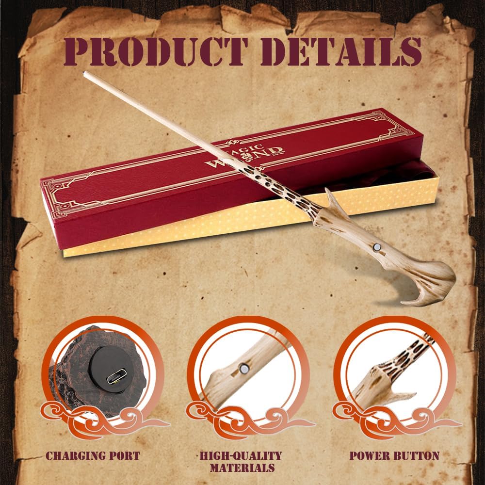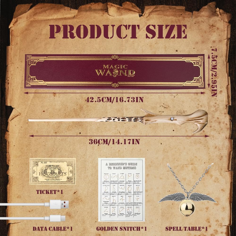 Bacchetta luminosa: la bacchetta Voldemort con dettagli autentici, è dettagliata, ben fatta, ogni bacchetta luminosa è lunga 35 cm e il manico ergonomico è comodo e facile da tenere. Il set di bacchette magiche può creare meglio l'atmosfera e portarti nel divertimento e nell'eccitazione del mondo magico Materiali di alta qualità: la bacchetta Voldemort è realizzata in resina di alta qualità e il nucleo interno in acciaio rende la bacchetta magica più dura, meno soggetta a deformazioni e rotture ed è durevole. Squisita e bella fattura, non sbiadisce facilmente, non si danneggia o si rompe Tema Magic World: realizza piccoli sogni magici per i tuoi amici e familiari e portali nel mondo magico. Diventa un mago con le nostre bacchette Voldemort per adulti Il prodotto contiene: 1 x bacchetta Voldemort, 1 x confezione regalo, 1 x carta incantesimo, 1 x biglietto della stazione, 1 x collana e 1 x cavo USB. Accendi l'interruttore, recita incantesimi, crea scenari magici per metterti in scena come un incantatore indimenticabile e realizzare i tuoi sogni magici Ampia applicazione: questa bacchetta Voldemort è l'accessorio perfetto per il tuo outfit. La bacchetta magica con luce può soddisfare tutte le esigenze, perfetta per cosplay, Halloween o Natale, feste magiche, feste in costume e molte occasioni speciali