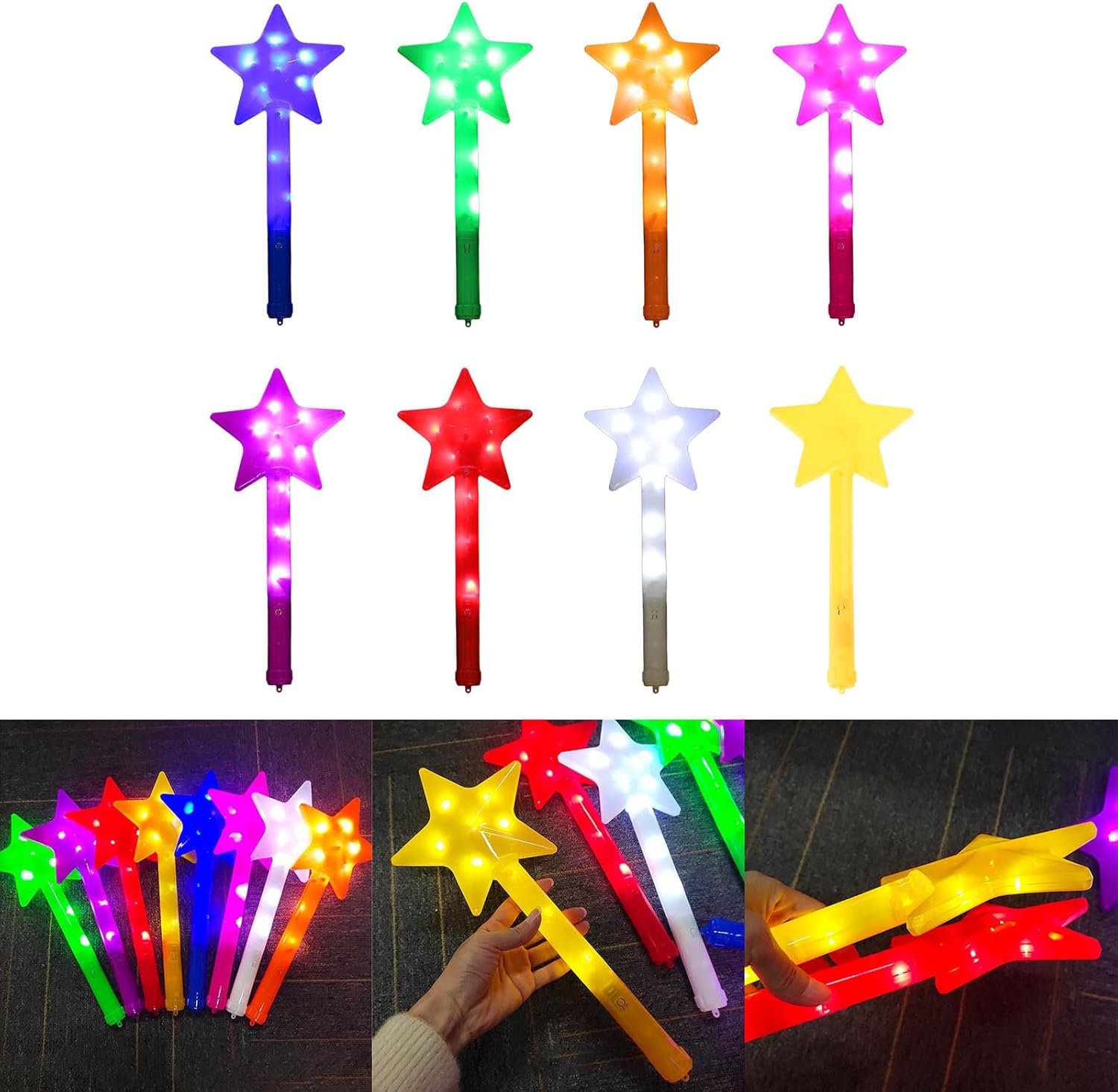 Questi bastoncini luminosi sono adatti per bambini, ragazzi e adulti e sono perfetti per feste, celebrazioni e spettacoli teatrali. Lascia che la tua creatività brilli e crei un'esperienza visiva unica Porta feste di compleanno, discoteche, festival musicali, Halloween, matrimoni e più gioia ed eccitazione. Questo bastone da fata aggiunge un tocco di festival e crea un affascinante display visivo Utilizzare materiale plastico di alta qualità. Sono portatili e facili da usare e offrono ore di divertimento continuo e luminoso Illumina la tua festa con queste affascinanti cinque stelle appuntite che sono bastoncini luminosi! Il loro effetto luminoso e vivace attirerà sicuramente tutta l'attenzione Illumina la notte e lascia la tua immaginazione con queste incantevoli cinque luci a stella appuntite. Non importa se si desidera organizzare un incontro tematico o semplicemente aggiungere divertimento, queste bacchette renderanno la vostra occasione indimenticabile