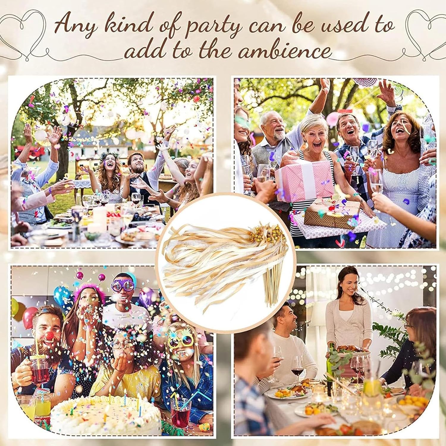 Uso versatile: progettate per matrimoni, eventi di classe, spettacoli e celebrazioni festive, queste bacchette forniscono una soluzione adattabile che esalta naturalmente la bellezza di diversi raduni Deliziosa campanella: viene fornita con una piccola campana che porta gioia e crea suoni piacevoli, per migliorare l'atmosfera celebrativa in matrimoni e occasioni speciali, aggiungendo fascino alla tua esperienza Uso a lungo termine: realizzato con componenti robusti, questo prodotto resiste all'usura senza sforzo, garantendo un'opzione affidabile che rimane funzionale attraverso innumerevoli celebrazioni Portatile da usare: progettate per la comodità, queste bacchette da sposa presentano una forma compatta e leggera che le rende altamente portatili e pronte per l'uso in qualsiasi momento, migliorando efficacemente ogni momento gioioso Ambiente di matrimonio: crea un'atmosfera commovente e festosa, splendidamente abbinata a nastri per migliorare naturalmente l'aspetto visivo dei tuoi momenti cari