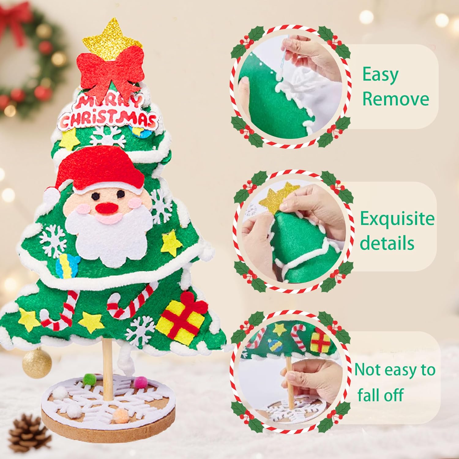 Con questo kit fai-da-te per alberi di Natale, i bambini possono creare le proprie decorazioni natalizie, ideale per feste di Natale, progetti scolastici o momenti creativi in famiglia Progettato per sviluppare la motricità fine e le capacità spaziali, incoraggiando i bambini a concentrarsi su attività creative pratiche invece di passare tempo davanti agli schermi Grazie a video istruzioni chiari e semplici da seguire, i giovani creativi possono eseguire facilmente i passaggi e rafforzare lo spirito di squadra lavorando con amici o familiari Un set completo con tutto il necessario per creare decorazioni natalizie personalizzate da tavolo, aggiungendo un tocco festoso a casa, scuola o eventi Adatto a ragazzi e ragazze appassionati di lavoretti manuali, promuovendo pazienza e orgoglio nel completare un capolavoro natalizio fatto a mano