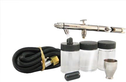 Doppia azione, mix interno, aerografo alimentato a sifone, 3 barattoli di miscelazione, 1 adattatore vaso, 1 1/4 oz, tazza da 7 ml, tubo dell'aria con raccordo per sorgente d'aria, volantino Questo modello è un aerografo a doppia azione, mix interno, sifone di alimentazione. Include un cuscino ergonomico e ultra confortevole. Presenta il rilascio brevettato dell'ago posteriore che consente all'utente di rimuovere l'ago senza dover rimuovere il manico dell'aerografo. L'aerografo è comodo da usare, affidabile, economico, bassa manutenzione e facile da usare. Perfetto per grafica, artigianato, arte e hobby. Un ago, una punta autocentrante e una testa eliminerà la necessità di più pezzi di ricambio.