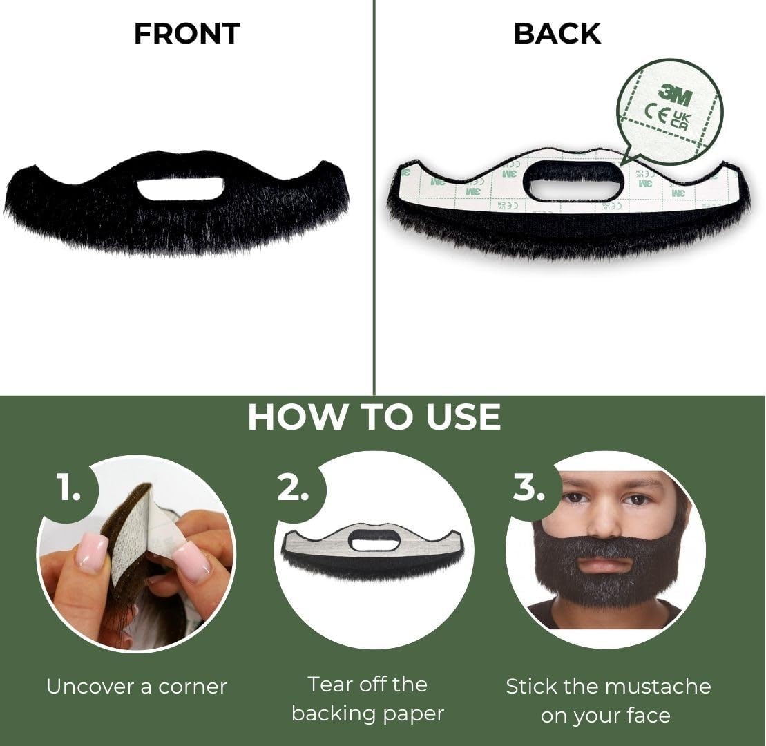 Accessorio per costume per bambini: sorrisi per visetti Questa barba finta autoadesiva a misura di bambino è ideale per giochi, Halloween, feste a tema... e in generale solo per divertimento. Fa sempre ridere, da solo o con altri outfit. I bambini non possono festeggiare un ballo con un costume peloso come questo sulla faccia. Adatto anche ad adulti con piccoli lineamenti. Semplice e conveniente: peli finti istantanei sul viso Facile da installare e rimuovere, ma rimane in posizione anche per ore con l'adesivo originale. Può anche essere riutilizzato più volte con un po' di nastro biadesivo o una gomma a spirito. Per esigenze particolari, la barba può essere tagliata, pettinata, acconciata e spruzzata di colore o tinta, se lo si desidera. Certificato sano e sicuro: per la massima tranquillità Facciamo tutto il possibile per garantire non solo divertimento, ma anche sicurezza. Questo prodotto è certificato secondo i severi standard UE per i giocattoli (EN 71-1, 71-2, 71-3) e la sua striscia adesiva soddisfa anche gli standard europei per i dispositivi medici. Utilizziamo solo pelliccia sintetica di prima qualità e nastro chirurgico 3M che sono ipoallergenici e non irritanti per la pelle. Realizzato con una qualità premium affidabile: un originale Moustaches realizzato a mano nel cuore dell'Unione Europea con tanto amore e risate e solo le migliori pellicce sintetiche, da uno dei produttori più creativi al mondo di baffi, barbe finte e altro ancora. Il nostro obiettivo sincero è la tua assoluta soddisfazione con i nostri peli facciali finti di alta qualità.