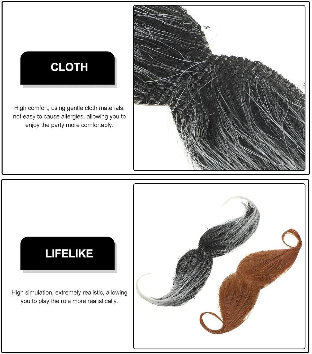 Descrizione : Materiale affidabile: i baffi finti autoadesivi sono realizzati in tessuto felpato di qualità, garantendo morbidezza, comfort, durata e leggerezza. Non appesantiscono il viso. Effetto accattivante: questi peli finti sul viso porteranno un effetto sorprendente al tuo costume, facendoti sembrare un uomo anziano con un tocco di divertimento. Indossare le barbe finte ti renderà al centro dell'attenzione alle feste e attirerà l'attenzione delle persone. Facile da usare: con autoadesivo, facile da indossare e togliere i baffi per costumi e feste di Halloween. Applicazioni: barbe cosplay con dettagli raffinati, sono adatte per Natale, decorazioni di Halloween, feste a tema martedì grasso, cosplay, spettacoli teatrali, opera, teatro, feste in maschera, feste di compleanno, feste in maschera, feste in maschera, giochi di ruolo e altre occasioni divertenti. La confezione include: 2 baffi finti (1 nero e 1 marrone) nella confezione, fingendo che gli accessori per costumi siano il regalo di prima scelta per chi ne ha bisogno, aggiungi un tocco alla moda al tuo outfit. Specifiche tecniche: Materiale: tessuto felpato Tabella delle taglie: 13 cm x 10 cm. La confezione include: 2 baffi finti (1 nero e 1 marrone) Nota: Si prega di considerare un leggero margine di errore dovuto alla misurazione manuale e ai diversi monitor.
