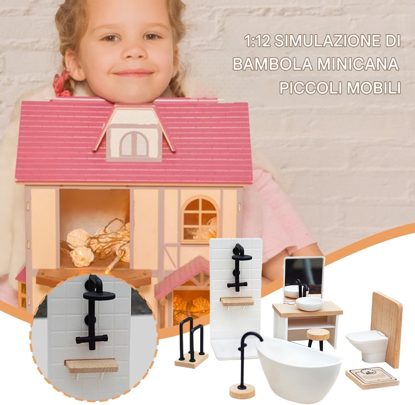 Durabilità Garantita: Realizzato con legno e PP di alta qualità, finitura accurata senza scheggiature per maneggevolezza sicura e resistenza prolungata, garantendo maggiore divertimento Progetto Compatto: Dimensioni in miniatura per un inserimento immediato nella maggior parte delle case delle bambole. Grazie al design concentrato, è facilmente riponibile e occupa spazio limitato durante la non utilizzo, semplificando la gestione degli spazi. Pensiero Spaziale Attivo: Potenzia la capacità di organizzare ambienti consentendo ai bambini di progettare liberamente il bagno delle bambole con combinazioni multiple, utilizzabili singolarmente o in gruppo per un apprendimento Ambientazione Realistica Fedele: Grazie al design particolareggiato e alla configurazione bagno in miniatura realistica, favorisce esperienze di gioco di ruolo immersive offrendo scenario di gioco 1:12 splendidamente riprodotto Dono : Scelta premurosa per occasioni speciali come compleanni e festività. Progettato per intrattenere sia maschi che femmine, sviluppa abilità cognitive attraverso giochi di ruolo coinvolgenti con miniaturizzati.
