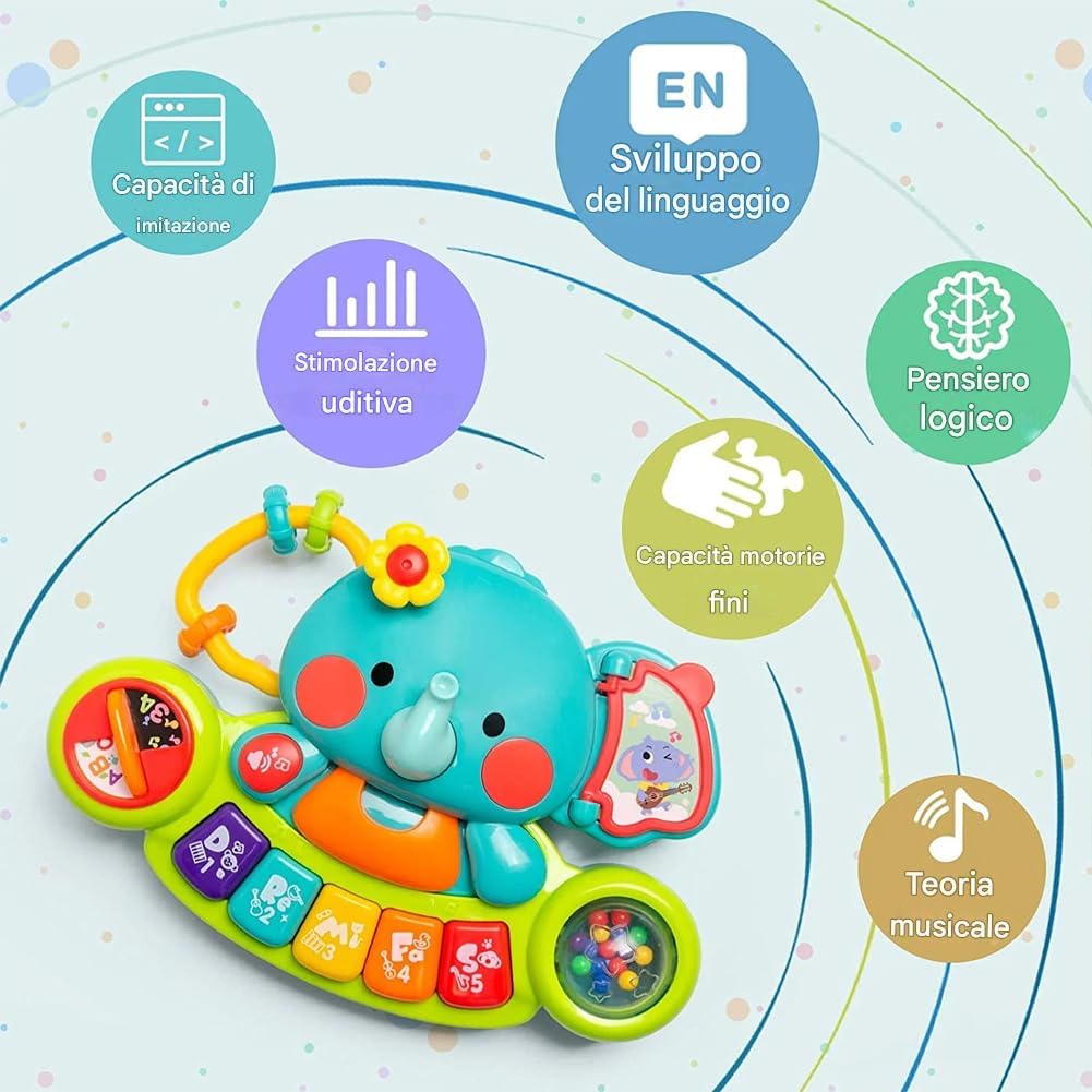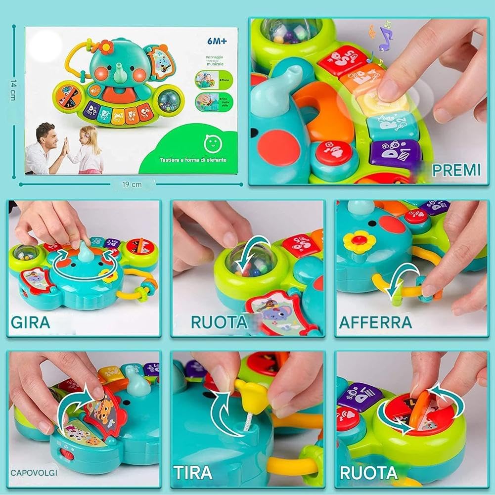 Giocattolo educativo multifunzione – Con 7 attività divertenti (rotazione palla, manopola, pagina girevole, tronco mobile, fiore a tiraggio, cerchi da afferrare e tasti musicali), stimola la motricità fine e grossolana, la coordinazione occhio-mano e la curiosità del bambino, rendendo ogni momento di gioco un’esperienza di apprendimento. Doppia modalità interattiva – In modalità apprendimento (in inglese) il bambino scopre numeri, suoni e versi di animali, mentre in modalità musica si diverte con melodie e ritmi coinvolgenti. Ideale per incoraggiare lo sviluppo del linguaggio e la sensibilità musicale fin dai primi mesi. Pensato per diverse fasi di crescita – Perfetto per neonati dai 6 mesi come supporto al tummy time, rinforzando i muscoli del collo e della schiena. Dai 6 mesi in su, il bimbo può giocarci da seduto, migliorando manualità, percezione sensoriale e capacità di esplorazione autonoma. Sicuro e resistente – Realizzato in plastica ABS premium senza BPA, con bordi lisci e levigati per proteggere la pelle delicata del bambino. Funziona con 3 batterie AAA (non incluse). Un regalo colorato e stimolante, perfetto per compleanni, Natale, Pasqua o qualsiasi occasione speciale.