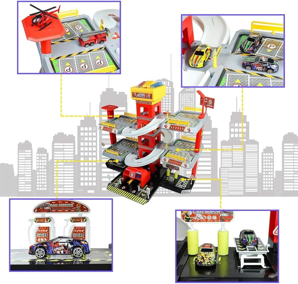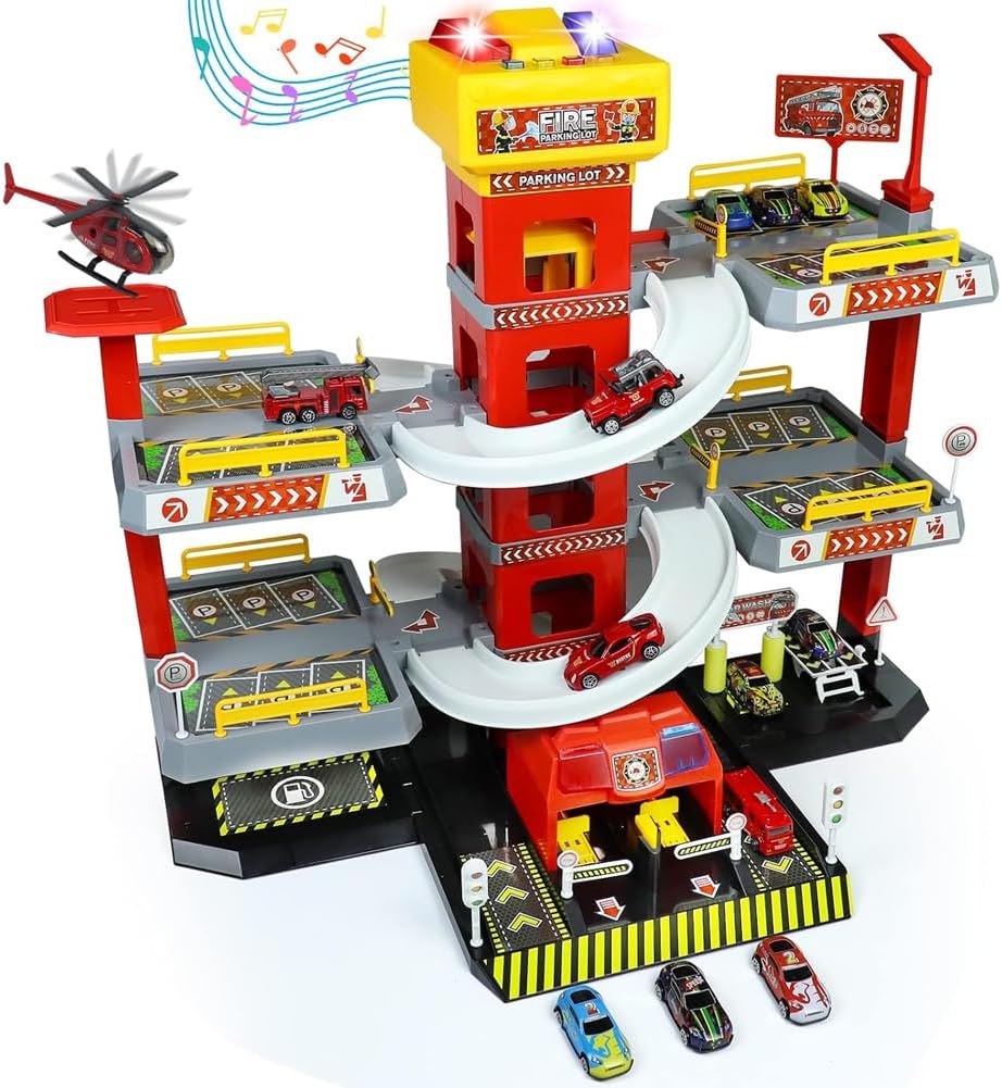 Pista parcheggio a 5 piani ricca di azione! Un fantastico set completo con rampe elicoidali, ascensore, eliporto e numerosi posti auto. I bambini potranno far sfrecciare le macchinine tra i piani, parcheggiarle, farle risalire e simulare missioni di salvataggio e intervento. Divertimento interattivo con luci e suoni realistici! Il garage è dotato di effetti luminosi e sonori che riproducono sirene e segnali, rendendo il gioco ancora più coinvolgente. Un’idea regalo perfetta per bambini dai 3 anni in su, appassionati di auto e giochi dinamici.