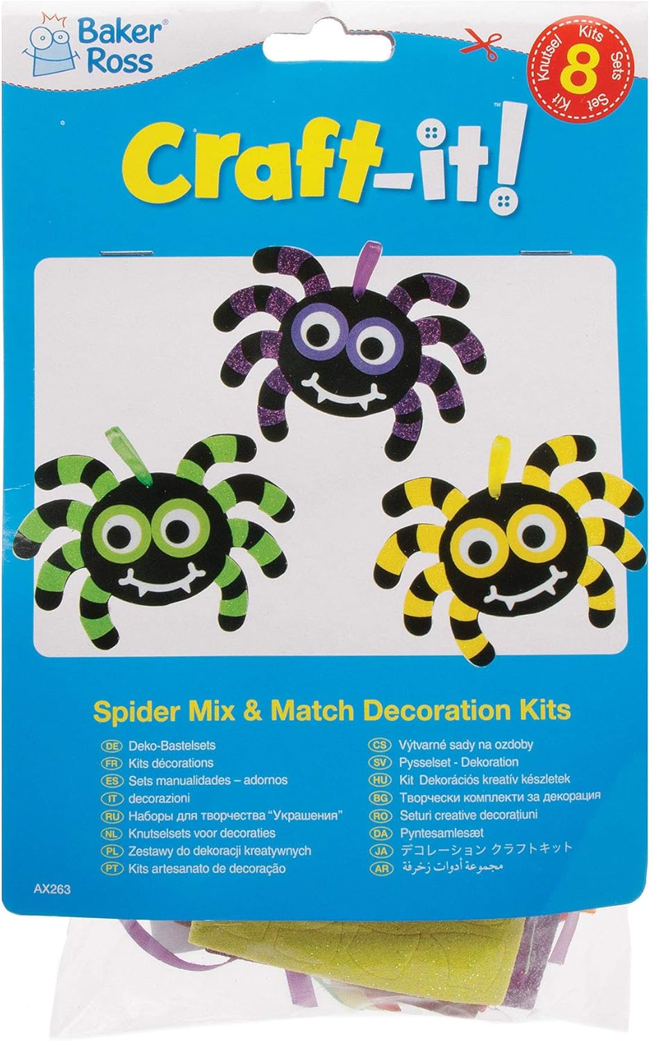 Divertimento magnetico: Mescola e abbina le decorazioni in gommapiuma per creare diversi disegni ideali per i bambini per decorare e celebrare questa stagione di Halloween. Facile da fare: Ogni kit include un modello di ragno in gommapiuma, decorazioni e calamite autoadesive. Questo è un mestiere senza disordine, non è necessaria la colla. Idee creative: Questi spaventosi progetti creativi sono perfetti per ragazze e ragazzi. Artigianato festa di Halloween e idee per dolcetto o scherzetto. Incluso nel pacchetto: 8 sagome di ragno in gommapiuma con decorazioni in gommapiuma adesiva assortite in molti colori vivaci. Realizzato da esperti: Baker Ross progetta e fornisce le migliori forniture artistiche e artigianali e giocattoli a scuole, gruppi e genitori da oltre 40 anni. Tutti i prodotti sono conformi alle norme generali sulla sicurezza dei prodotti e alle raccomandazioni sull'età, dove applicabili.