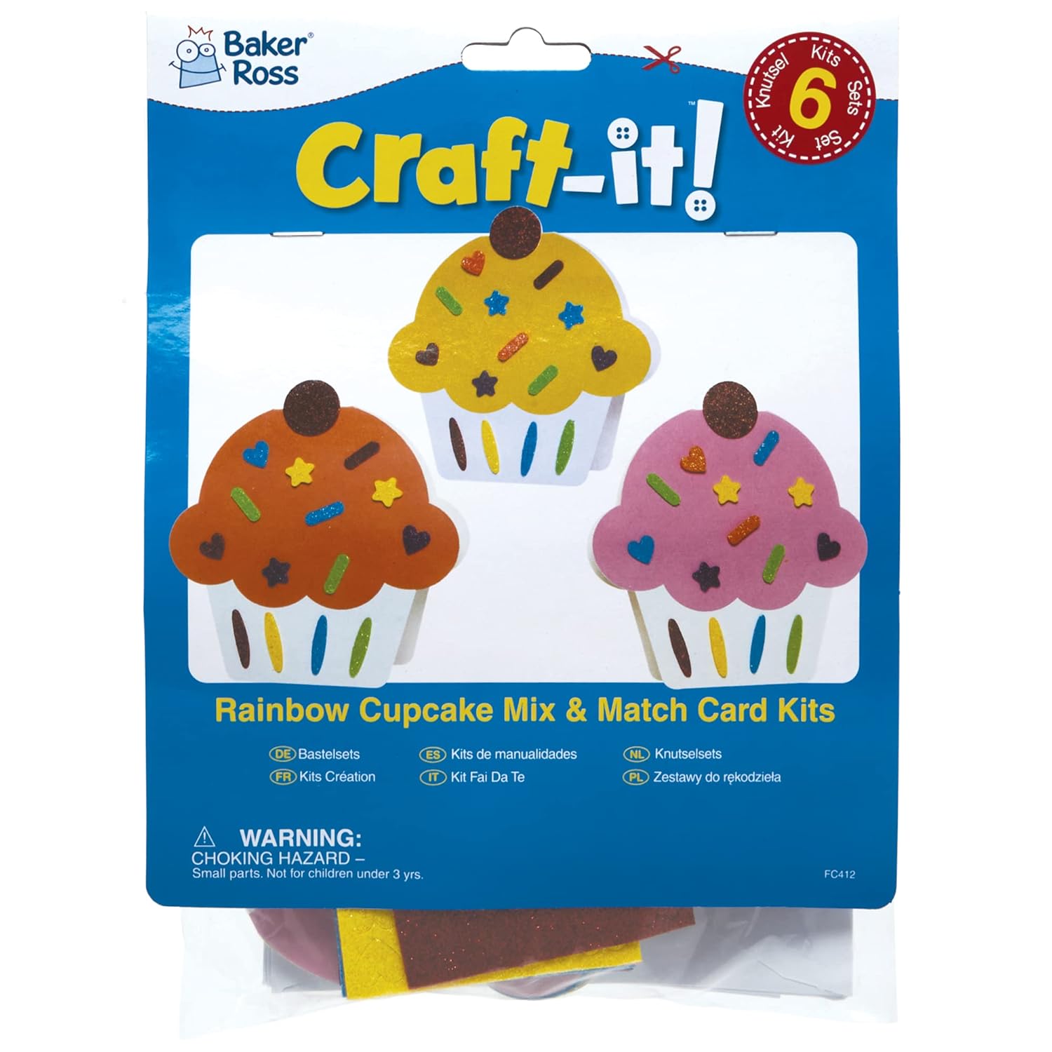 Biglietti fai da te: crea dolci biglietti per cupcake da regalare. Basta gli adesivi in gomma espansa glitterata in dotazione sulla carta per cupcake e avrete un fantastico biglietto per ogni occasione Fai da te per bambini: creare un biglietto personale per persone speciali. Facile da creare e un grande divertimento per tutti Divertimento fai da te: fai da te e spedire, a scuola, a casa o all'asilo. Ideale per lavori scolastici, gruppi di bricolage e fai da te. La confezione include: 6 biglietti arcobaleno. Ogni set include un biglietto, decorazioni in schiuma autoadesiva e una busta. Disponibile in 6 diversi motivi. Dimensioni del biglietto piegato: 12,5 x 12,5 cm Creato da esperti - Baker Ross progetta e fornisce forniture per arte e artigianato e giocattoli a scuole, gruppi e genitori da oltre 40 anni. Tutti i prodotti sono conformi alle norme generali di sicurezza dei prodotti e alle raccomandazioni statali sull'età, ove applicabili.
