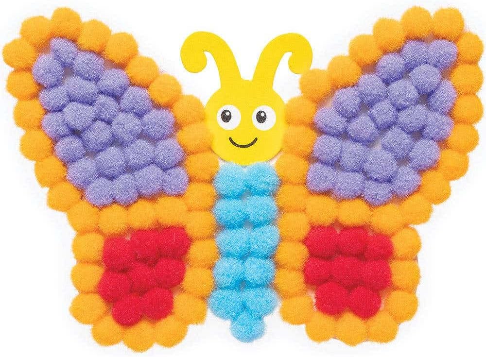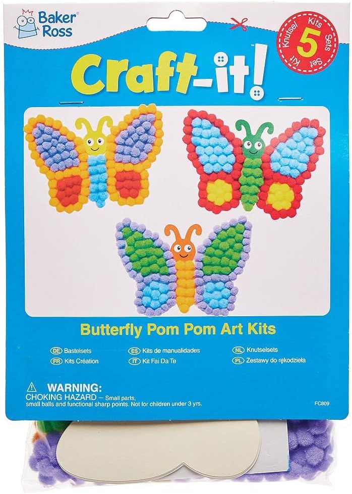 Pompon per bambini: I bambini creativi adoreranno creare meravigliose farfalle con questi pompon colorati! Stacca, attacca, crea! Kit per la creazione di pompon: I bambini creativi ameranno usare la tecnica unica di ricoprire la forma vuota con mini-pom colorati - e le basi sono autoadesive, quindi non è necessaria la colla! Staccare le sezioni pretagliate per rivelare una superficie appiccicosa, quindi aggiungere i pon-pon colorati. Tempo libero creativo per bambini: Creare, abbellire, amici per la vita! Ecco un'attività ideale da svolgere in classe, a casa, in gruppo o individualmente. Contenuto della confezione: Ogni confezione comprende 6 colori di pon-pon - arancione, rosa, verde, blu, viola e giallo. 5 disegni assortiti. Ogni kit comprende una sagoma in cartone autoadesivo, decorazioni in gommapiuma e pompons colorati. Dimensioni: 9,5 cm di altezza. Staccare le sezioni pretagliate per rivelare una superficie appiccicosa, quindi aggiungere i pompons colorati. Istruzioni incluse. Potrebbe essere necessaria della colla. Realizzato da esperti: Baker Ross progetta e fornisce forniture artistiche e Artigianali e giocattoli a scuole, gruppi e genitori da oltre 40 anni. Tutti i prodotti sono conformi alle normative generali sulla sicurezza dei prodotti e, ove applicabile, indicano l'età consigliata.