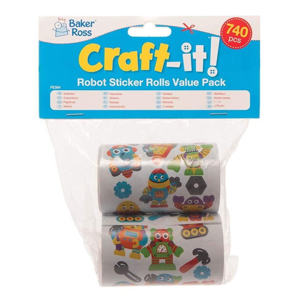 Set di adesivi colorati: con ogni adesivo robot puoi progettare il tuo album di adesivi, album fotografico, cono scolastico e album con adesivi. Adesivi per bambini: incolla gli adesivi su carta, cartone, plastica e altro. Le possibilità sono infinite Idee creative: i nostri adesivi per bambini sono perfetti come accessori per scrapbooking, per il fai da te e per i collage. La tua fantasia non ha limiti Incluso nella confezione: 2 rotoli per confezione, 360 adesivi per rotolo. In 72 modelli diversi. Dimensioni comprese tra 10 mm e 30 mm Realizzato da esperti: Baker Ross fornisce a scuole, gruppi di giovani e genitori i migliori materiali e giocattoli per arti e mestieri da 40 anni. Tutti i nostri prodotti sono soggetti alle normative CE e generali sulla sicurezza dei prodotti e, ove applicabile, indicano l'età consigliata.
