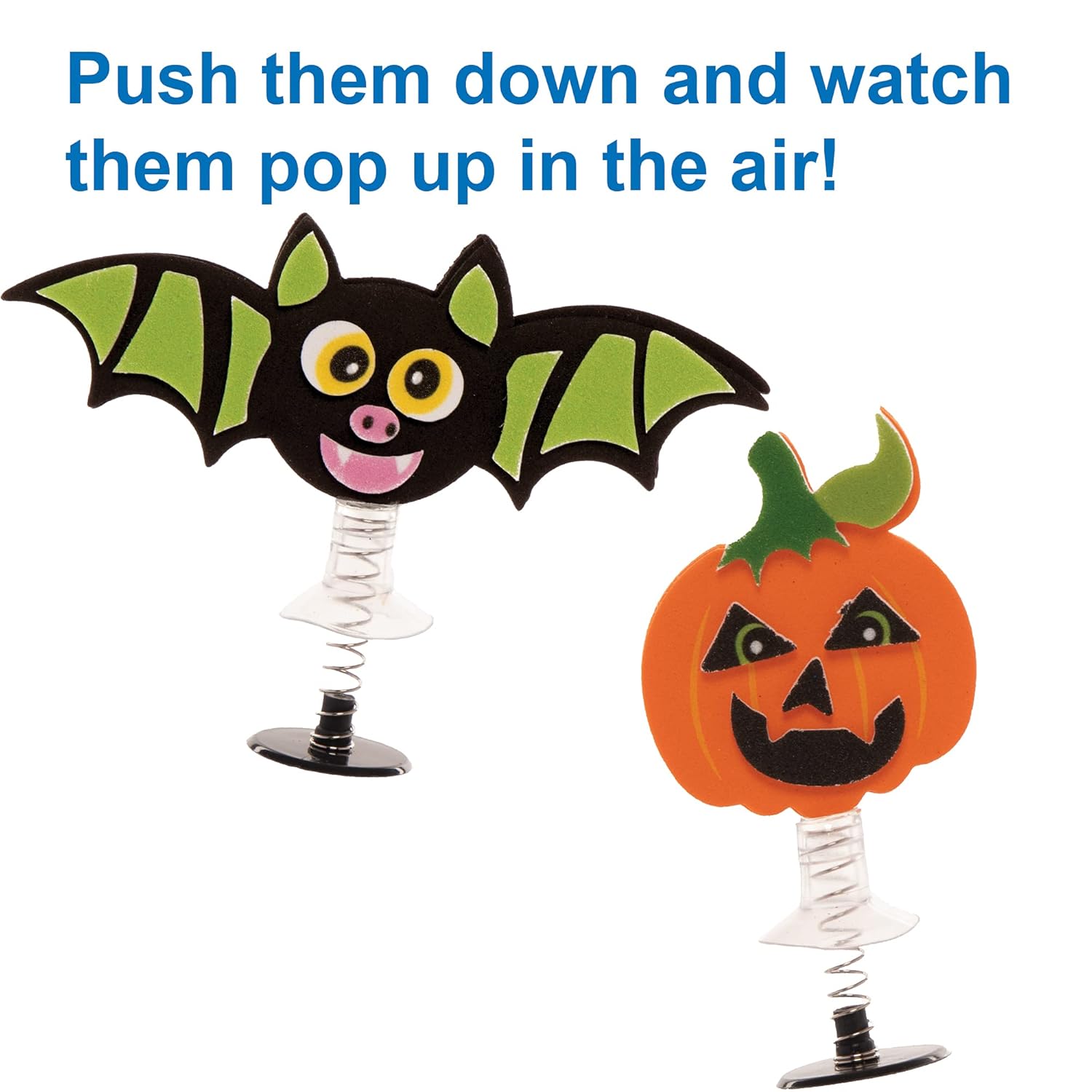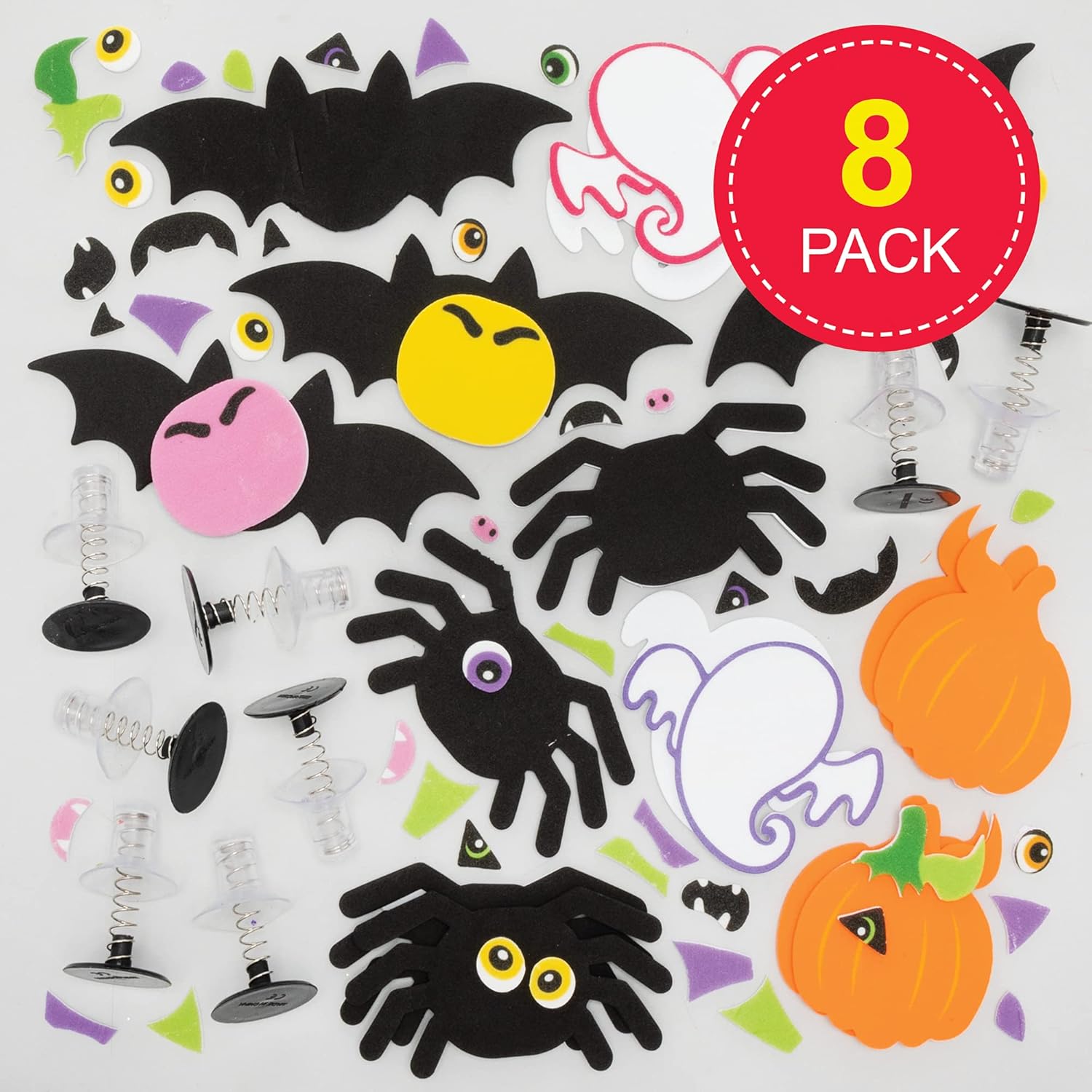 Baker Ross FE849 Kit Giocattoli Salterini di Halloween - Confezione da 8, Attività Artigianali per Bambini da Assemblare, Decorare ed Esporre, Ottimo Come Regalo per Bambini Creativi Arte e Artigianato per Bambini: Questi kit di Halloween di giocattoli salterini faranno ridere i bambini e li faranno divertire. Questi bottoni salterini in gomma saltano fino a un metro da terra. Premi il centro girandoli al contrario, posizionali su una superficie piana e guardarli saltare. Giocattoli che saltano: Questi divertenti giocattoli da festa faranno divertire i bambini in una giornata piovosa. Fai a gara per vedere chi può raggiungere il punto più lontano o saltare più in alto! Incluso nella confezione: Questo set contiene 8 giocattoli. Ogni giocattolo misura tra 6,5 cm - 8,5 cm di altezza (3,9 - 2,6 pollici), fornito con adesivi in gommapiuma assortiti. Per bambini dai 5 anni in su. Realizzato da esperti: Baker Ross progetta e fornisce forniture artistiche e artigianali e giocattoli a scuole, gruppi e genitori da oltre 40 anni. Tutti i prodotti sono conformi alle normative generali sulla sicurezza dei prodotti e, ove applicabile, indicano l'età consigliata.