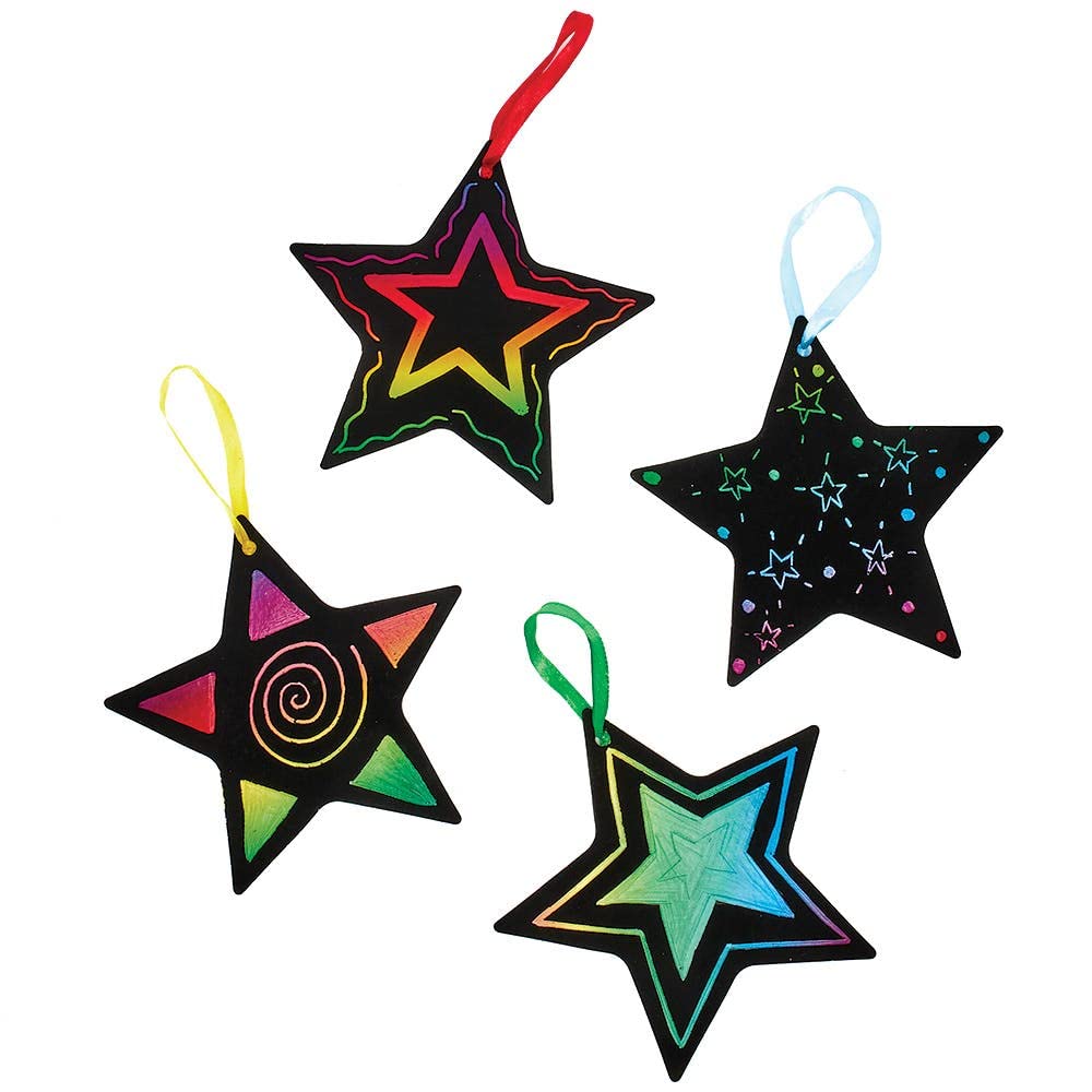 Carta da grattare: preparatevi a rimanere a bocca aperta mentre passate la bacchetta sulle vostre stelle e liberate un arcobaleno di colori che scaturisce dall'interno! Disegnate, rivelate blocchi di colore vivaci, aggiungete motivi e messaggi: quello che volete! Disegno per bambini: I bambini fantasiosi che amano far finta di niente rimarranno stupiti da questi fantastici effetti e dai modelli che si possono creare! Create strisce, blocchi di colore o linee delicate e intricate, date sfogo alla vostra immaginazione! Artigianato per bambini: I bambini svilupperanno la loro creatività e destrezza attraverso questa divertente attività! È un'ottima attività da svolgere in classe, a casa, in gruppo o individualmente. Contenuto della confezione: Ogni decorazione viene fornita con uno strumento per grattare e un nastro per appenderla. 1 design. Altezza 12 cm. Ogni decorazione è dotata di uno speciale rivestimento che permette di graffiare e rivelare i colori dell'arcobaleno. Prodotti da esperti: da oltre 40 anni Baker Ross progetta e fornisce i migliori hobby e giocattoli per scuole, gruppi e genitori. Tutti i giocattoli e i prodotti Baker Ross sono conformi agli standard di sicurezza generali e l'età minima è indicata ove applicabile.