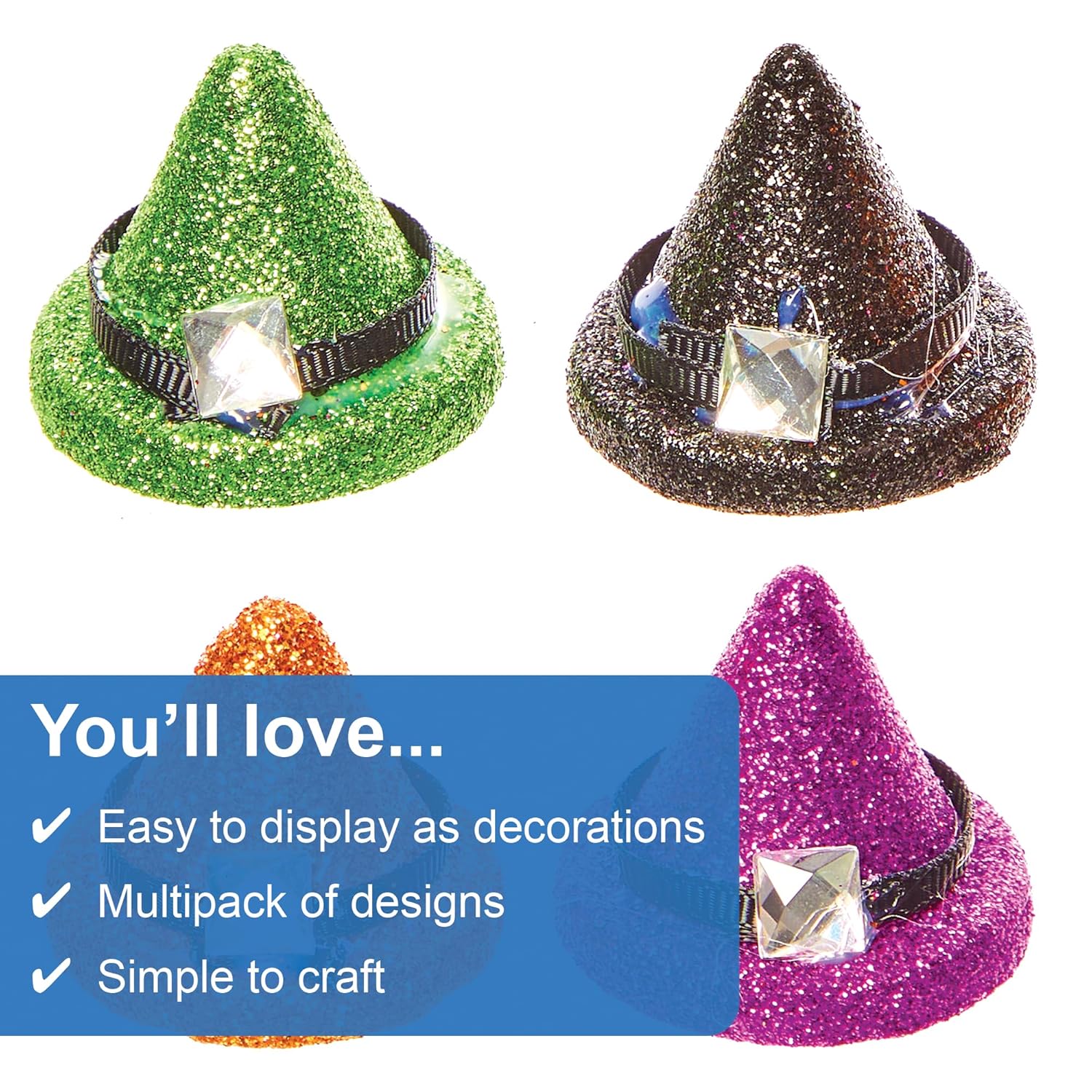 Abbellimento di Halloween: Questa confezione multipla contiene mini cappelli da strega glitterati, perfetti per creare personaggi di Halloween. Ogni cappello è impreziosito da una gemma d'argento e da un rivestimento di glitter. Arti e mestieri per bambini: i bambini e le bambine possono incollare questi abbellimenti di Halloween su diverse superfici di carta e cartoncino. Questi piccoli cappelli daranno sicuramente un tocco di lucentezza ai lavoretti di artigianato e ai modelli spettrali. Cappelli da strega per i lavoretti: I bambini possono utilizzare la colla PVA Baker Ross (non inclusa) per attaccare i cappelli ai loro progetti artigianali. Questi cappelli sono ideali per creare decorazioni per la festa di Halloween. Incluso nella confezione: Questa confezione contiene 10 pezzi, in 4 colori glitterati assortiti - nero, verde, arancione e viola. Dimensioni 3,5 cm. Prodotti da esperti: Baker Ross progetta e fornisce le migliori forniture artistiche e artigianali e i migliori giocattoli a scuole, gruppi e genitori da oltre 40 anni. Tutti i prodotti sono conformi alle norme generali sulla sicurezza dei prodotti e, se del caso, alle raccomandazioni per l'età.