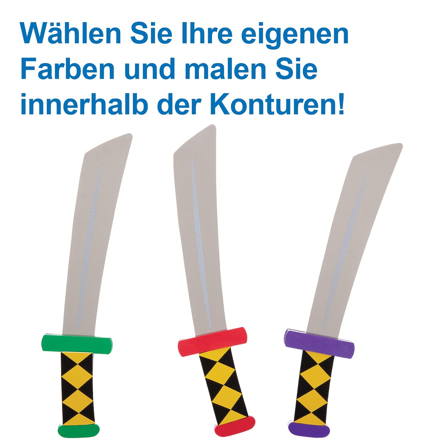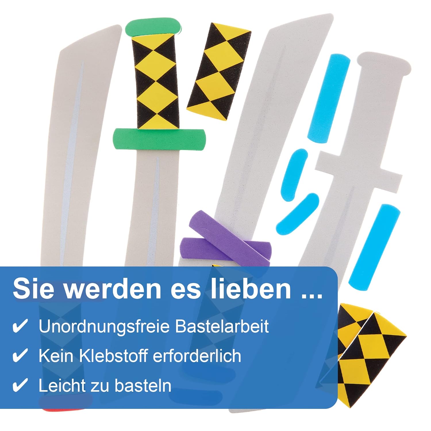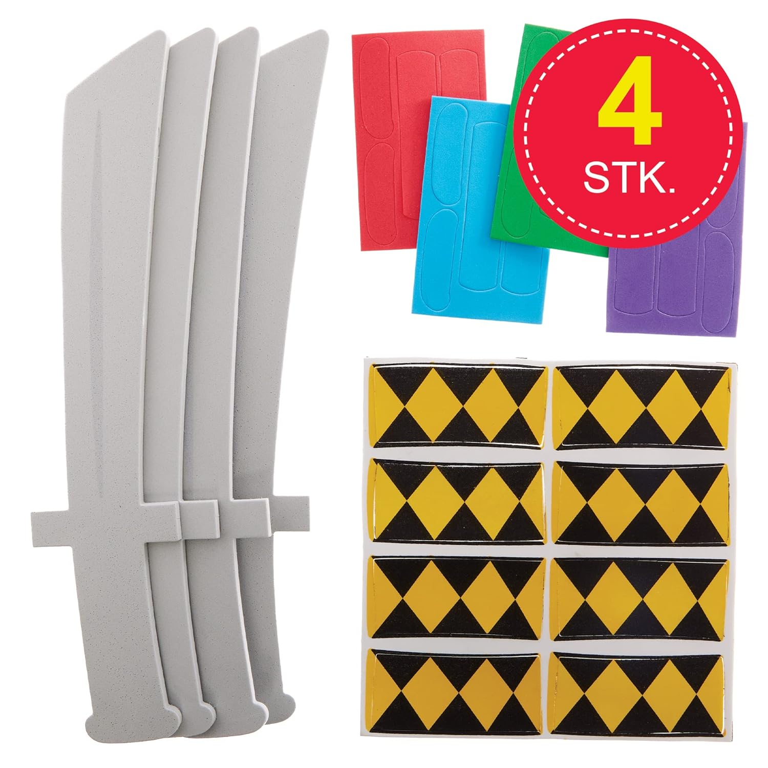 Spade ninja per bambini: i bambini possono fingere di essere ninja con queste spade colorate con manici fantasia. I bambini si divertiranno tantissimo realizzando lavoretti e poi giocando con le spade con i loro amici. Sono il tocco finale perfetto per un vestito o un costume da ninja. Materiali per arti e mestieri: ragazzi e ragazze di tutte le età possono realizzare questi kit facili da realizzare. I bambini possono semplicemente staccare le parti autoadesive in schiuma e incollarle sulle basi della spada. Questi kit artigianali non richiedono colla né disordine. Lavoretti per feste: queste spade in morbida schiuma sono perfette per feste in maschera e feste in costume. Combina queste spade in schiuma con le maschere ninja Baker Ross e le borse da festa (non incluse). Incluso nella confezione: questa confezione contiene 4 kit in 4 colori diversi: rosso, verde, blu e viola. Ogni set include uno stencil in schiuma per spada ninja samurai e decorazioni in schiuma autoadesive. Lunghezza della spada 31 cm. Realizzato da esperti: Baker Ross progetta e fornisce i migliori materiali e giocattoli per arti e mestieri a scuole, gruppi e genitori da oltre 40 anni. Tutti i prodotti sono conformi alle norme generali sulla sicurezza dei prodotti e possono fornire una raccomandazione sull'età.
