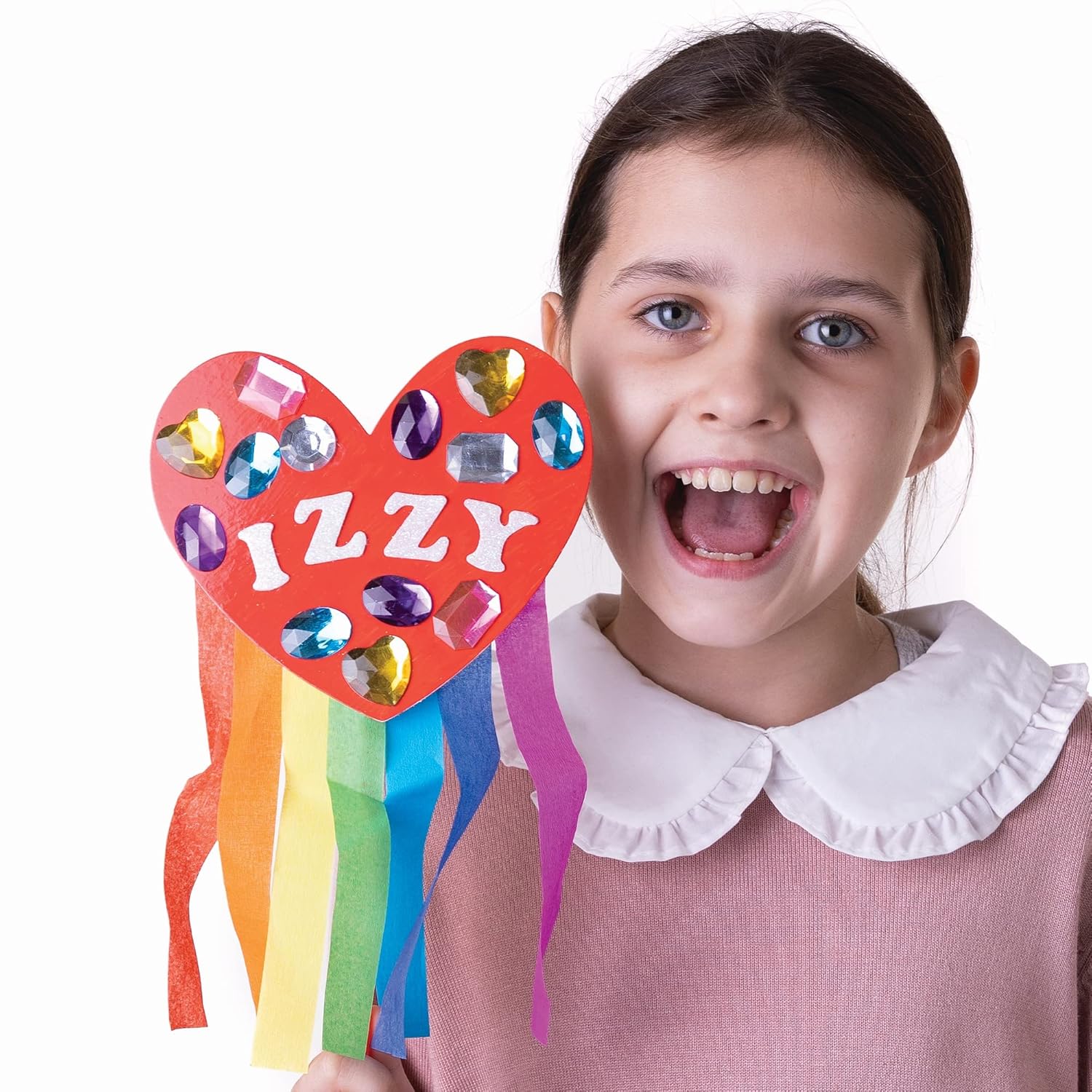 Crea le tue bacchette magiche: I bambini adoreranno disegnare le loro bellissime bacchette con Stella, colorarle e crearle da soli o insieme agli amici. Lavoretti arcobaleno facili da realizzare per bambini: Colora e progetta la tua unica stella per creare la tua bacchetta magica. Lascia che i tuoi progetti creativi prendano una svolta con questi incantevoli e mitici disegni. Ottieni extra creatività: Personalizza ancora di più le tue bacchette usando i nostri pennarelli con punta in fibra, penne decorative, piume, paillettes e molto altro (tutti venduti separatamente). Incluso nella confezione: Ogni pacchetto include 8 x kit artigianali con bacchetta a cuore arcobaleno. Ogni kit include i modelli di cartoncino, nastrini di carta crespa e bastoncini colorati. Altezza totale 28 cm (11 pollici) Realizzato da esperti: Baker Ross progetta e fornisce forniture artistiche e artigianali e giocattoli a scuole, gruppi e genitori da oltre 40 anni. Tutti i prodotti sono conformi alle normative generali sulla sicurezza dei prodotti e, ove applicabile, indicano l'età consigliata.