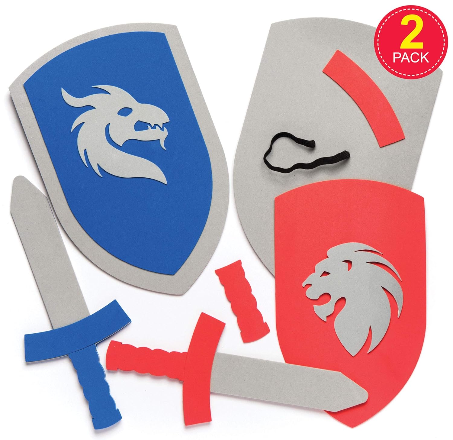 Ciascun kit include la sagoma della spada e dello scudo in gommapiuma autoadesiva, parti in gommapiuma pretagliate, cordino elastico e adesivi. Dimensioni: scudo 28 cm, da 27 cm. 2 colori assortiti: Rosso e Blu. Realizzato da esperti: Baker Ross progetta e fornisce le migliori forniture artistiche e artigianali e giocattoli a scuole, gruppi e genitori da oltre 40 anni. Tutti i prodotti sono conformi alle norme generali sulla sicurezza dei prodotti e alle raccomandazioni sull'età, dove applicabili.