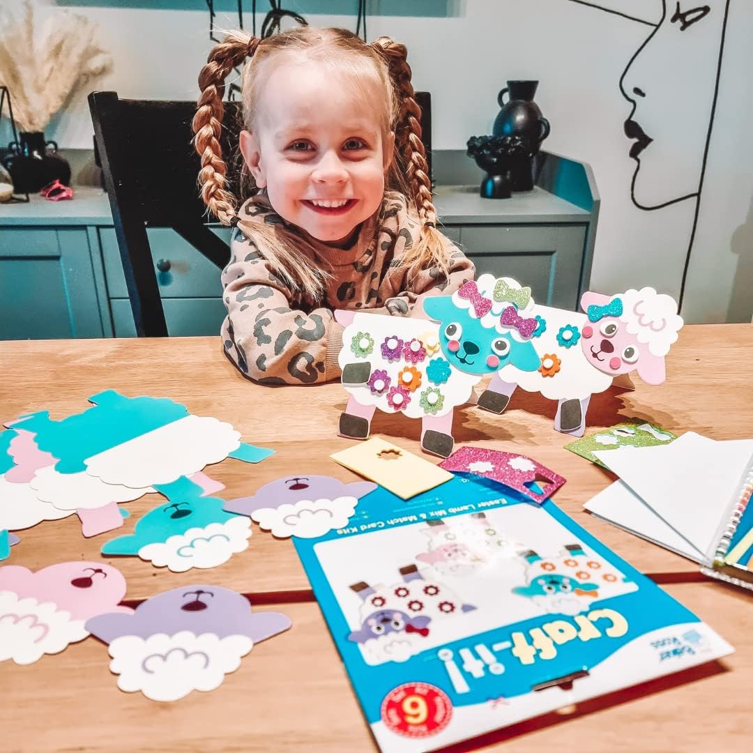 Artigianato pasquale per bambini: porta la tua carta di Pasqua al livello successivo con un divertente biglietto di agnello pasquale fatto in casa. Kit per creare biglietti di Pasqua: crea i tuoi biglietti di agnello pasquale mescolando e abbinando le decorazioni in schiuma autoadesiva per creare una marca davvero unica. Ogni kit include carta, pezzi di schiuma autoadesiva e busta. Perfetto per l'artigianato dei bambini: facile da realizzare e decorare, adatto per bambini dai 3 anni in su. I bambini si divertiranno a dare vita a questo progetto e personalizzare questi biglietti di agnello pasquale per familiari e amici.