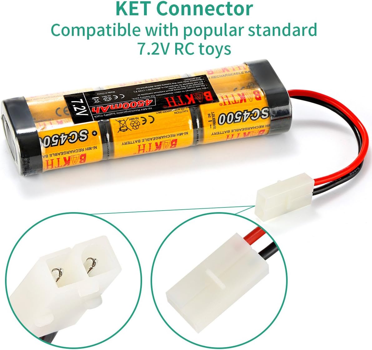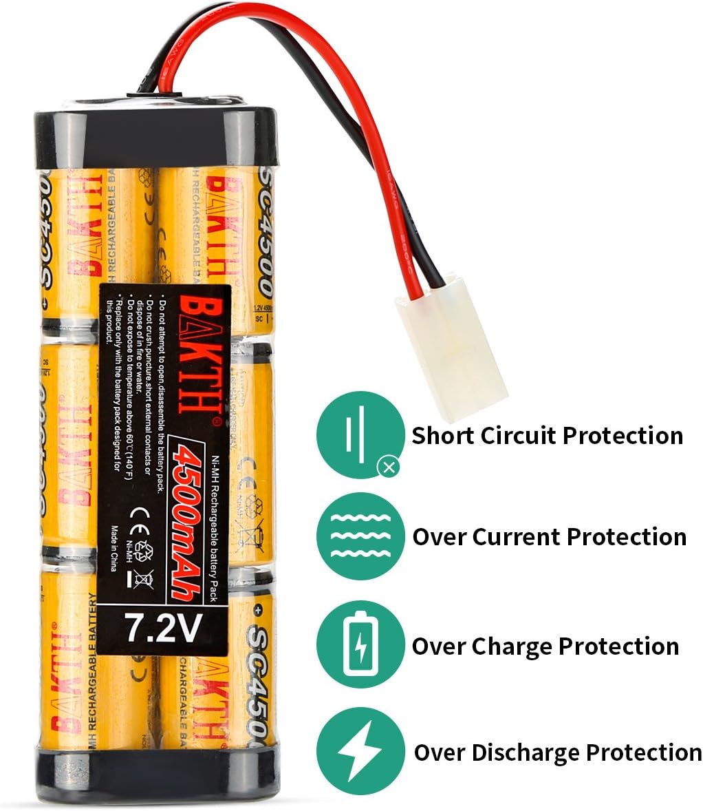Prestazioni estremamente elevate: ricarica rapida, nessun effetto memoria, lunga durata. Molto affidabile e durevole. Materiali di alta qualità. I cavi in silicone altamente flessibili sono estremamente resistenti al calore e resilienti per le massime prestazioni e sicurezza. Batteria compatibile con i popolari modelli RC da 7,2 V per auto, camion, barche, elicotteri, elicotteri, buggy, carri armati e monster truck, come HPI, Tamiya, Traxxas, LOSI, Associated, Kyosho, RadioShak, Amewi e altri. Le protezioni multiple integrate contro sovraccarico, scarica eccessiva, sovracorrente, cortocircuito e surriscaldamento interno garantiscono un utilizzo più sicuro. Nota: per garantire la durata della batteria e un utilizzo sicuro, utilizzare il caricabatterie con una potenza non superiore a 3 A. Sottobicchieri in regalo. Offriamo una garanzia di 12 mesi e un servizio clienti cordiale.