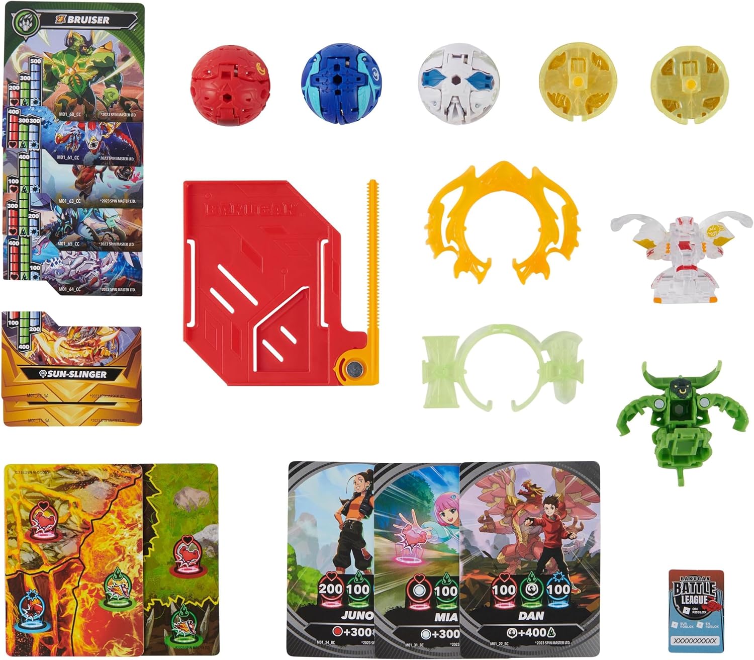 Bakugan Con spin extra: questo pacchetto da 5 battaglia contiene 2 palle Bakugan Attacco Speciale e 3 palle Bakugan Core con carte collezionabili - con la ripcard per la liquidazione, i Bakugan rotante iniziano le loro battaglie Combinazioni individuali con questi Bakugan: con le sfere di base, basta combinare la parte superiore (in alto) e la parte inferiore (in basso) e connettersi con le palle Attacco Speciale utilizzando l'anello di potenza e il rotolo Bakugan o girare nella battaglia Con le carte personaggio in due pezzi, la battaglia è ancora più strategicamente guidata, ideale per le tue compilation I nuovi luoghi di battaglia di Bakugan: con i set di addestramento (ciascuno venduto separatamente) e la Battle Arena, le battaglie tra i Bakugan possono essere combattute come nella serie 2 Bakugan Attacco Speciale, 3 Bakugan, 1 Ripcard, 5 Carte Personaggio, 2 Carte Attacco Speciale, 3 Carte Brawler, 2 Carte Portale, 1 XL Ripcord e 1 Token con Codice Roblox Questo giocattolo Bakugan è un ottimo souvenir o regalo per ogni occasione o compleanno per ragazze, ragazzi e tutti i bambini dai 6 anni - il pacchetto battaglia è l'inizio ideale per costruire una grande squadra Bakugan Nota: nessuna selezione di una versione specifica è possibile online. Il prodotto consegnato può variare dalle immagini