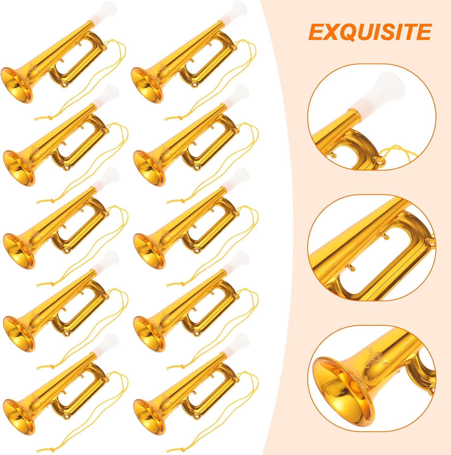 Suono chiaro: puoi portare lo strumento a tromba in qualsiasi scena vivace, senza preoccupazioni di sicurezza, la qualità del suono è chiara e inconfondibile e puoi suonare insieme alla musica Leggeri e facili da trasportare: leggeri e portatili, sono comodi da trasportare per aiutarti a sviluppare musica, colori, abilità, immaginazione e logica Sicuro ed efficace: questo mini modello di tromba musicale è realizzato in materiale ABS di qualità, i modelli di tromba simulati sono sicuri e gioiosi che possono esercitare la capacità polmonare Esercizio: I modelli perfetti per migliorare il riconoscimento del ritmo vocale e sviluppare il loro interesse per la musica, che per sviluppare la loro intelligenza Strumenti di apprendimento ampiamente utilizzati: modelli di suonare la tromba del sassofono perfetto per festival musicali, club, concerti, feste, eventi sportivi, rave, festival, aggiungendo divertimento a qualsiasi evento/spettacolo
