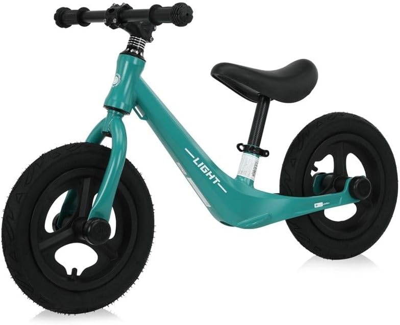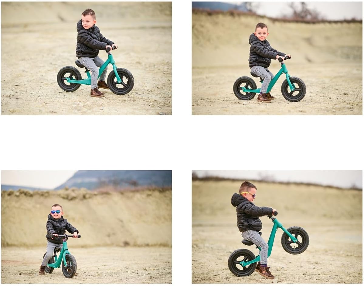 Bicicletta senza pedali in verde per bambini dai 2 ai 5 anni, telaio leggero in magnesio, peso massimo di 25 kg, pneumatici da 12 pollici, struttura robusta, sedile confortevole con rivestimento in pelle sintetica PU, manubrio regolabile in altezza con impugnature in gomma morbida TPR, allena il senso dell'equilibrio, facile montaggio