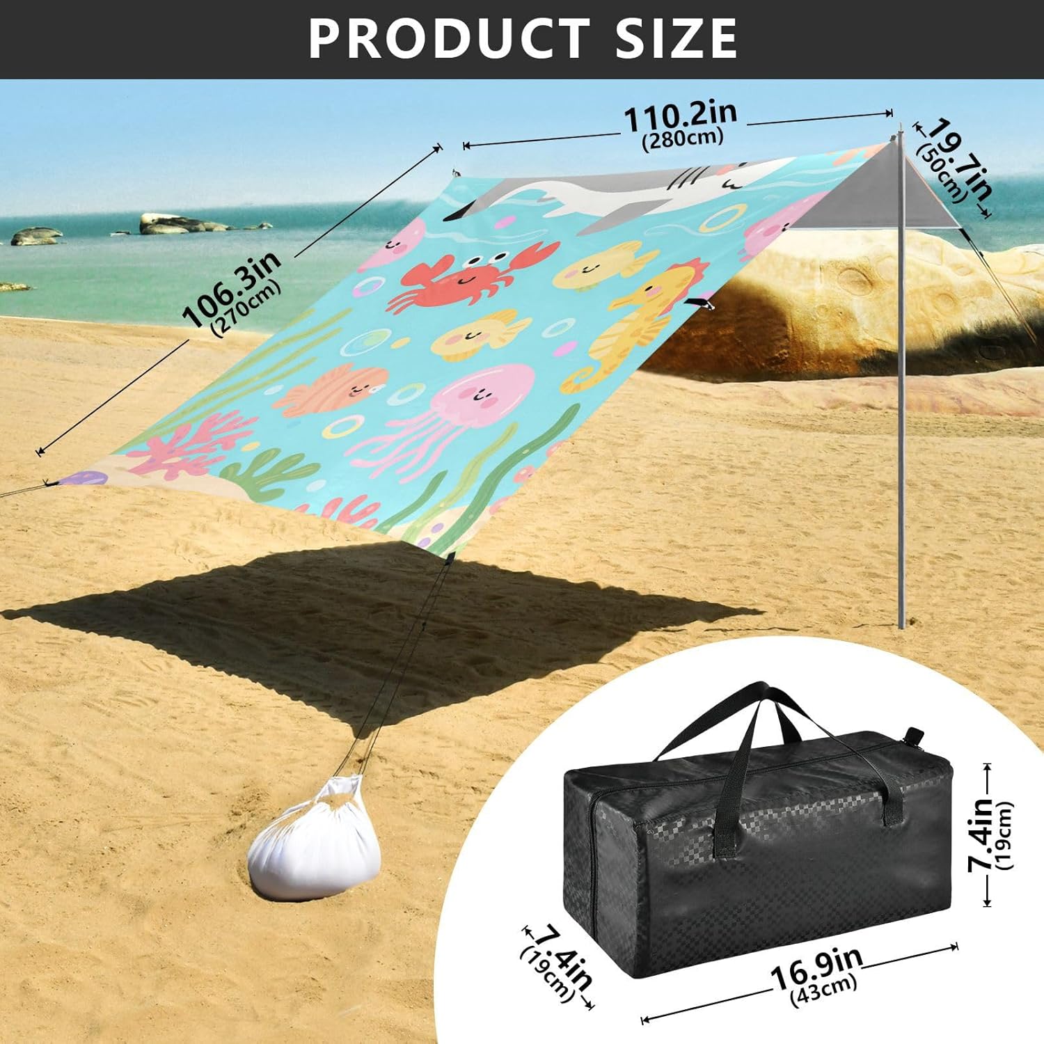 Protezione UPF 50+: tessuto Oxford di lunga durata e impermeabile, questa tenda da spiaggia stabile ti terrà protetto nelle giornate di sole. Più stabile: oltre al sacco di sabbia, aggiungiamo corda e pali extra per rendere la tenda da spiaggia più stabile, il che rende questo parasole da spiaggia ha una migliore resistenza al vento. Installazione esterna rapida e facile: ogni tenda da spiaggia pieghevole si monta facilmente e viene fornita con pali di stabilità e sacchi di sabbia che consentono di utilizzarlo su spiagge sabbiose, aree erbose spesse o anche in luoghi rocciosi da campeggio. Leggera e facile da trasportare: pronta per qualsiasi avventura in spiaggia, la tenda Beach Cabana pesa 2,7 kg e si ripiega in dimensioni compatte. Con una borsa portatile inclusa, puoi portare la sua tenda da spiaggia con te in ogni viaggio in spiaggia. Questa cabina da spiaggia pieghevole è un must have per la famiglia, il colore blu navata di questo baldacchino da spiaggia è lo stesso del cielo e dell'oceano, essendo in questa tenda da spiaggia ti fa sentire rilassato e felice.