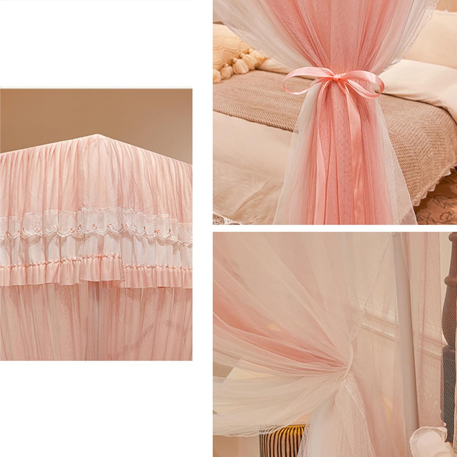 Baldacchino per Letto Matrimoniale per Ragazze, baldacchino per Letto a Quattro Angoli, Doppio Strato, zanzariera, Pratico e Bello, Adatto per Interni ed estern