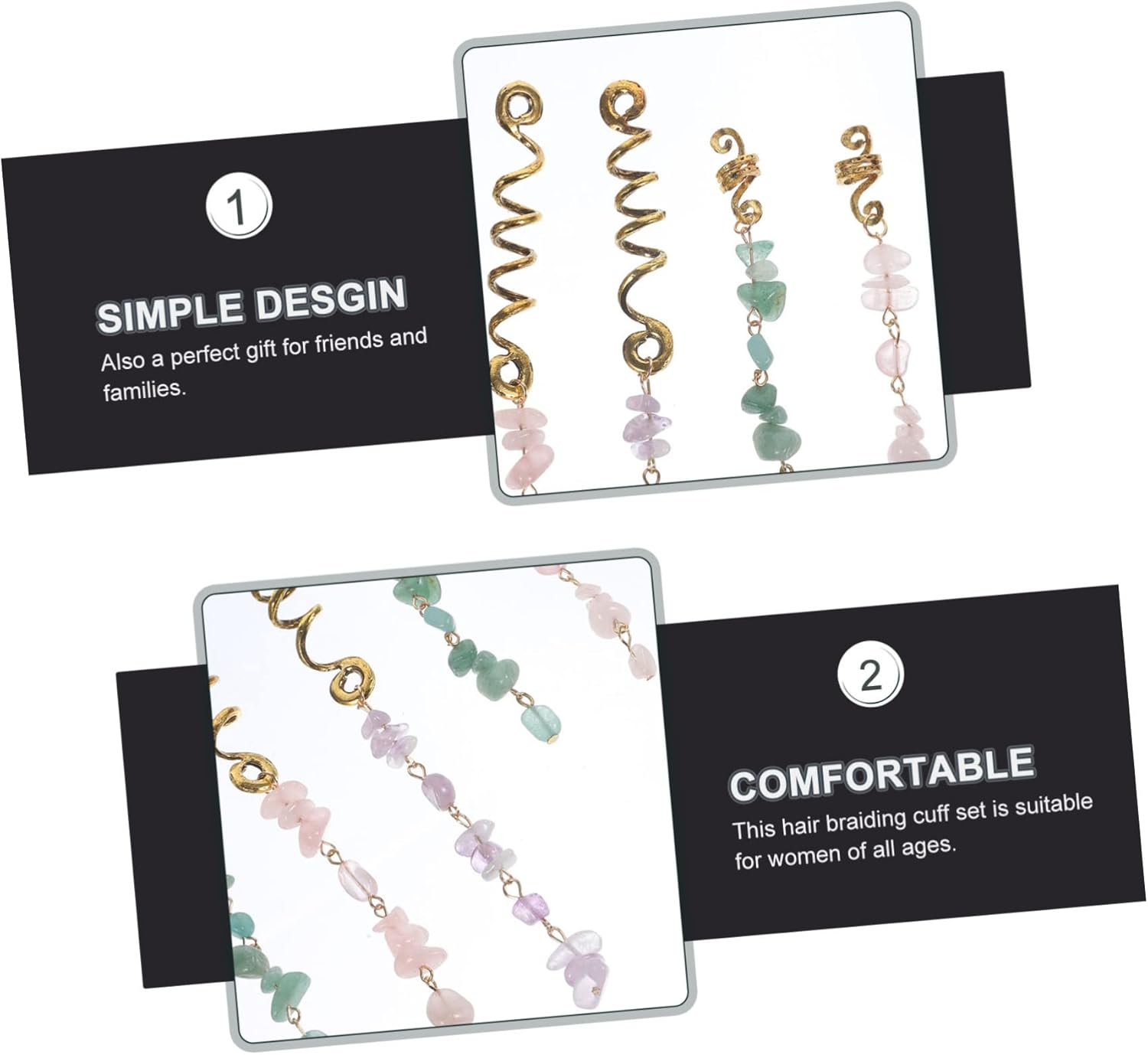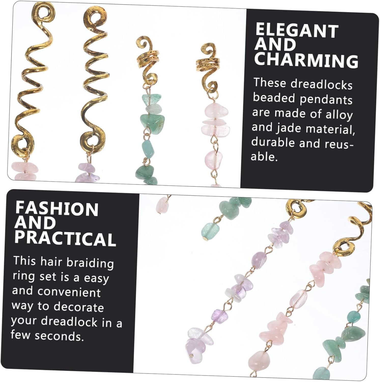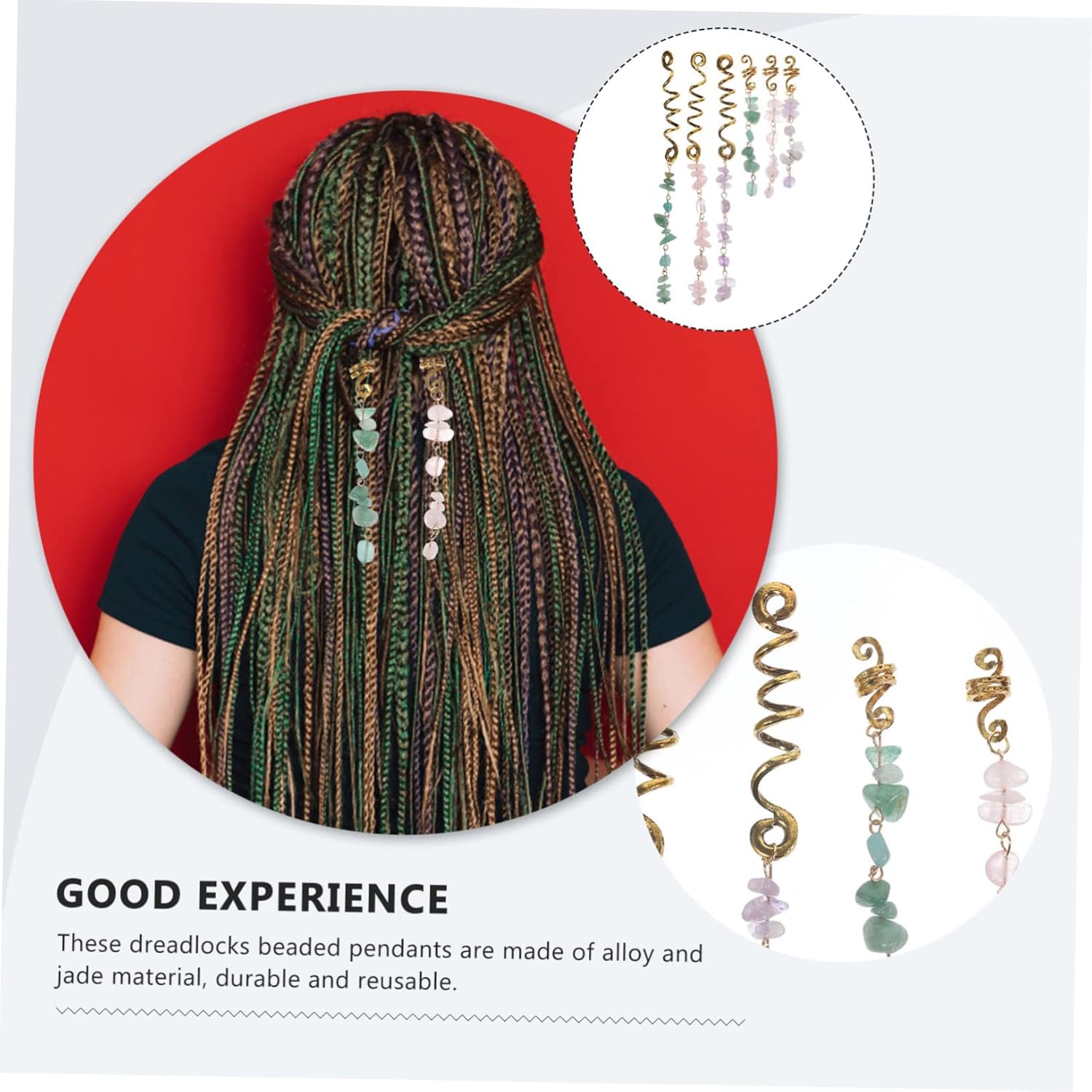Polsini per capelli - Gli accessori per intrecciare i capelli possono essere utilizzati in varie occasioni, per cosplay, ballo di fine anno, feste, scuola, viaggi e uso quotidiano, accessori per capelli per trecce Accessori per gioielli - Questi pendenti con perline per dreadlock sono realizzati in lega e materiale di giada e sono pendenti per capelli riutilizzabili Gioielli - Questi accessori per capelli sono facili da indossare senza sentirsi pesanti o scomodi, adatti per essere indossati tutto il giorno e sono ciondoli per capelli intrecciati Perline di dreadlock in pietra - Con questo set di anelli per intrecciare i capelli, puoi decorare facilmente e comodamente i tuoi dreadlock solo pochi secondi, come ciondolo dreadlock Accessori per capelli intrecciati - Questo set di polsini per intrecciare i capelli è adatto a donne di tutte le età, uno per figlie, madri, fidanzate, ciondoli per capelli intrecciati