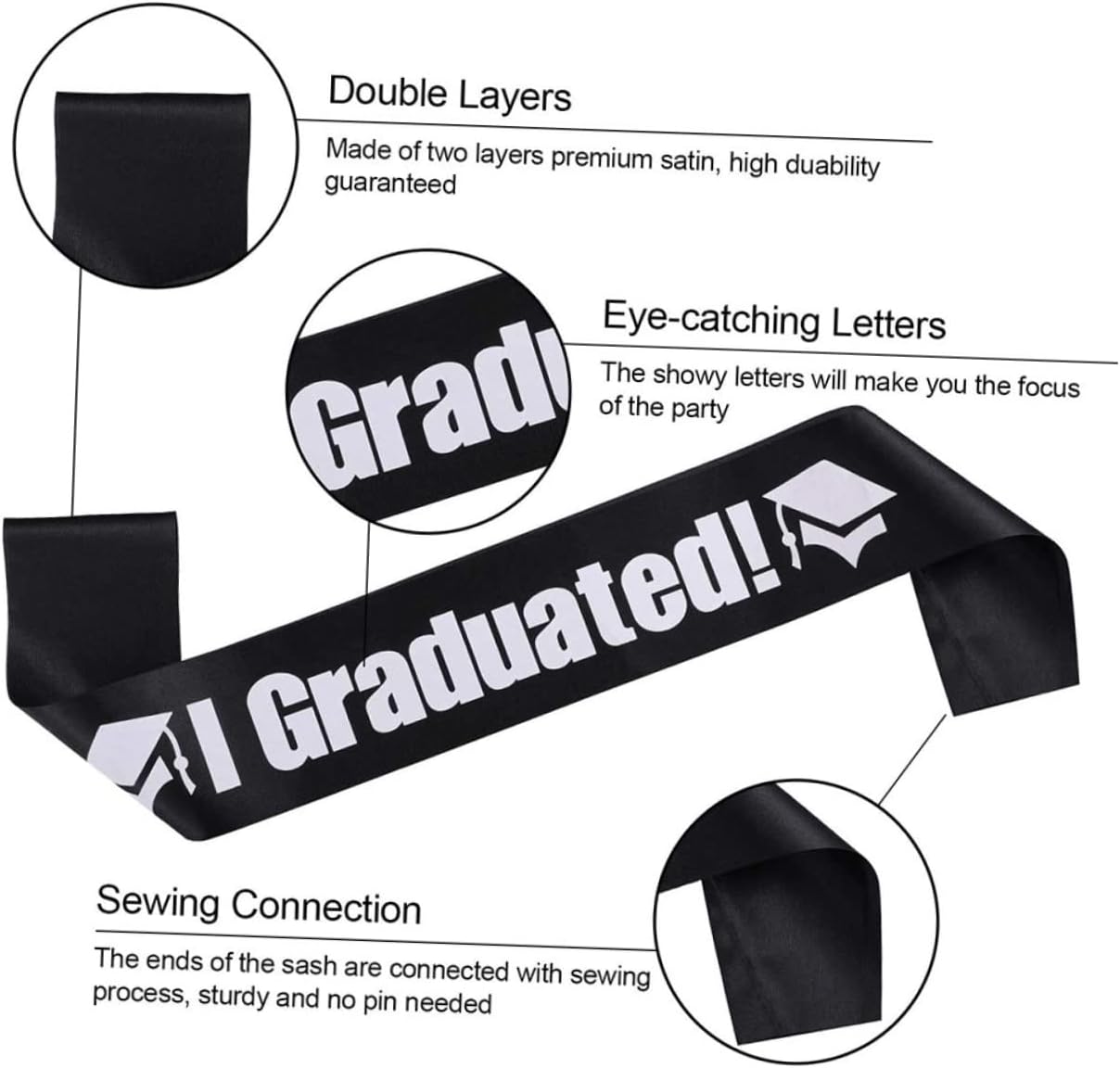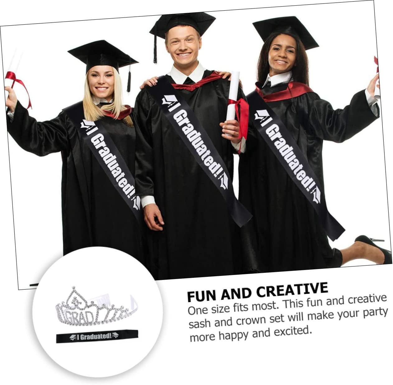 Taglia unica. Questo divertente e creativo set di fascia e renderà la tua festa più felice ed eccitata. Realizzata in tessuto di raso di alta qualità, questa fascia è comoda da indossare. È un set di fascia e con stampa di lettere, festoso e luminoso. Un accessorio necessario per la festa di laurea, festa di ballo! Ravviva la tua festa a tema, offri un po' di divertimento giocoso a te, ai tuoi compagni di classe e all'insegnante.