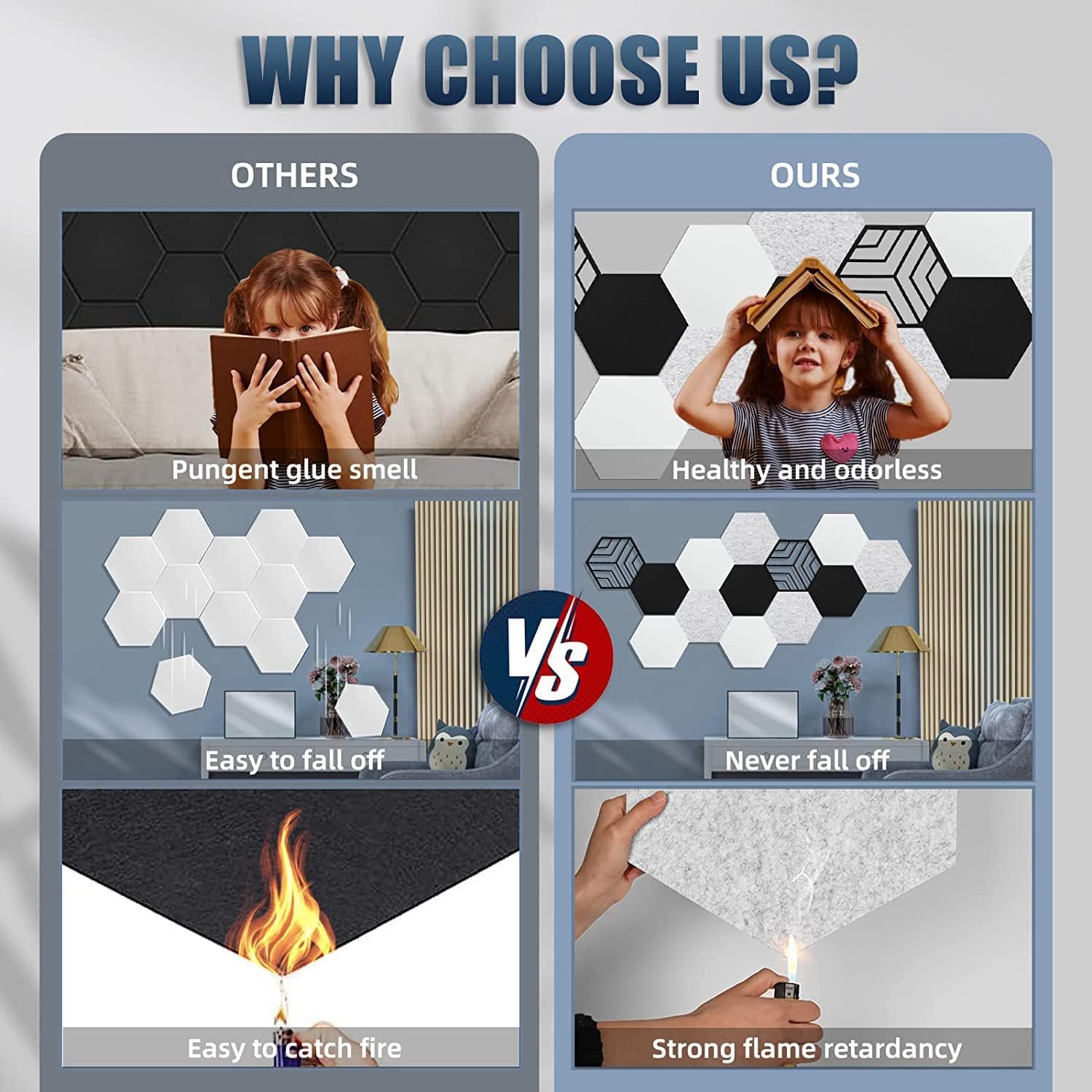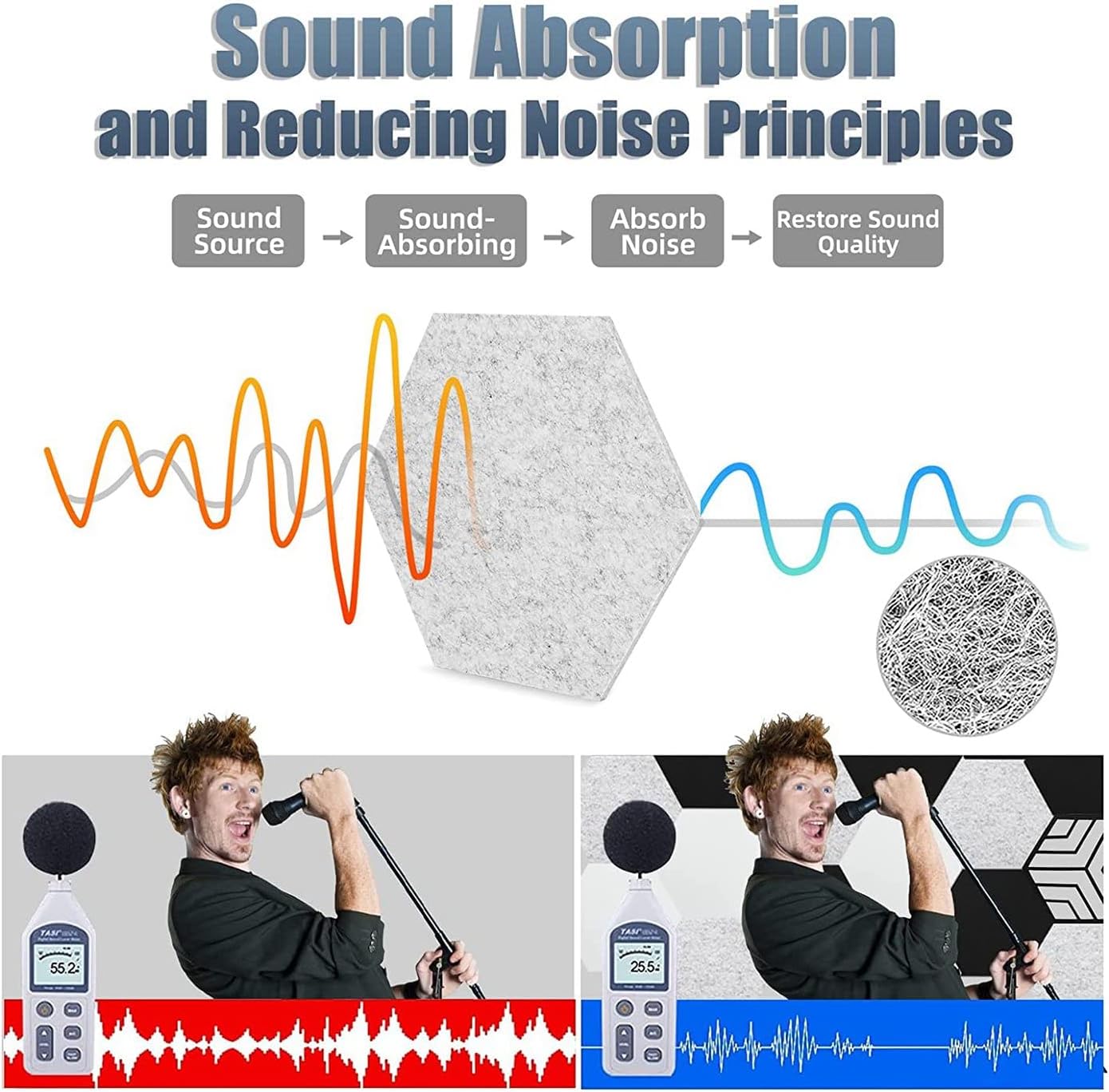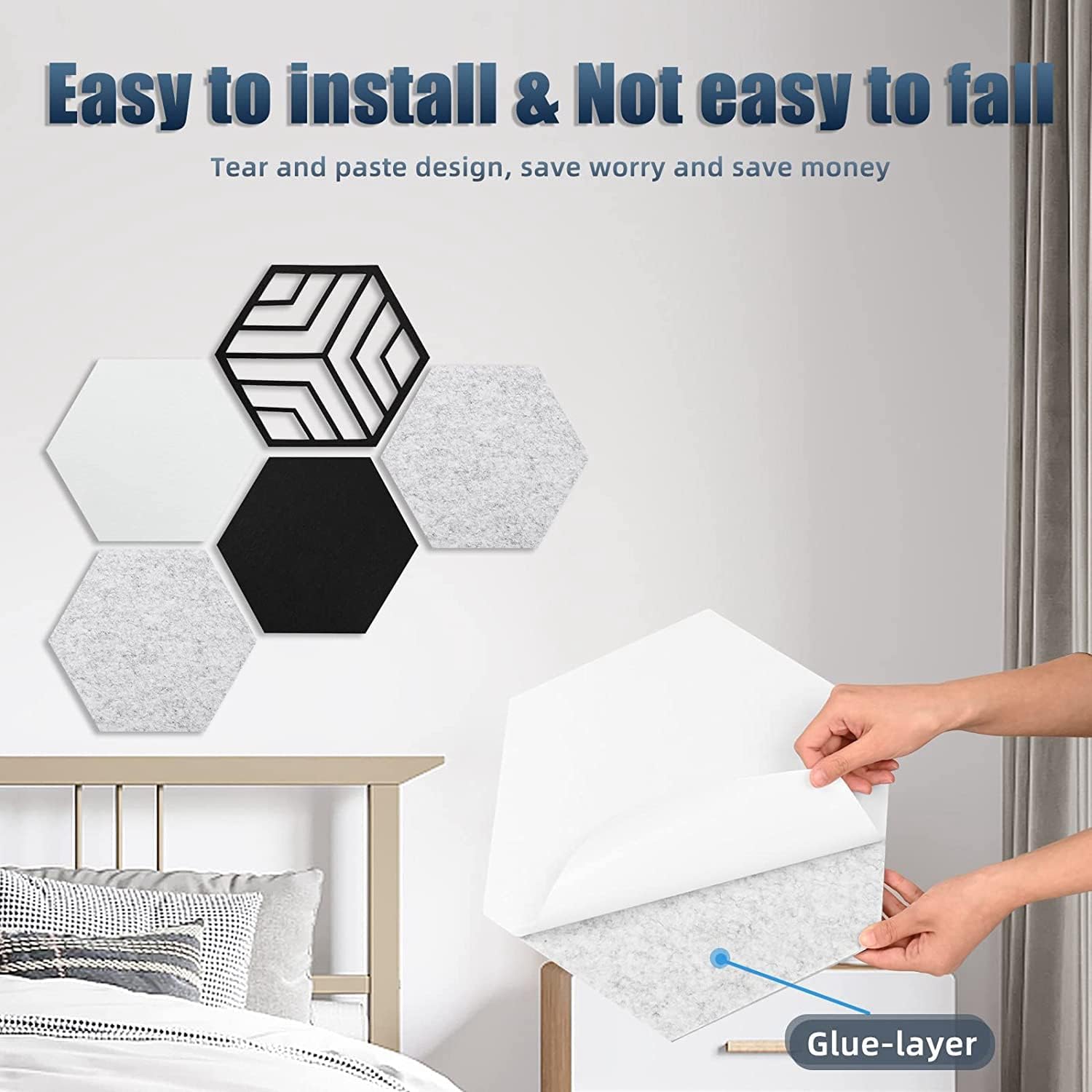 UPGRADE PANNELLO ACUSTICO HOLLOW-OUT: questo pannello acustico esagonale aggiornato è più alla moda della tradizionale schiuma fonoassorbente, che può soddisfare la tua creatività più DIY. Due esclusivi wallboard fonoassorbenti scavati aggiungeranno anche punti salienti alla tua parete artistica. Oltre ad assorbire il rumore ed eliminare l'eco, possono anche svolgere un ruolo nella decorazione e nella protezione della parete. Ciò consente di risparmiare tempo, fatica e denaro, riducendo i costi di installazione e semplificando il funzionamento. AUTOADESIVO E FACILE DA INSTALLARE: L'intero retro del nostro pannello insonorizzante è ricoperto da strato adesivo autoadesivo, che elimina la necessità di acquistare ulteriore colla o nastro adesivo. Deve solo determinare la posizione di incollaggio del pannello, strappare lo strato protettivo direttamente lo si utilizza, l'installazione di un pannello può essere completata in 10 secondi. MATERIALI ECOLOGICI DI ALTA QUALITÀ: Questo pannello fonoassorbente a colori misti è realizzato al 100% in poliuretano di alta qualità e il suo effetto di assorbimento acustico e riduzione del rumore è migliore di quello del pannello in schiuma. Inoltre è ignifugo, inodore, non tossico, privo di gas, antiscivolo, resistente alla corrosione e resistente allo sbiadimento. Che si tratti di adulti, bambini o animali domestici, respirare e toccare sono sicuri. PANNELLO ACUSTICO MULTIUSO: il design esagonale, i molteplici metodi di giunzione DIY e i modelli di ritaglio alla moda possono soddisfare le tue doppie esigenze di elaborazione acustica e decorazione murale. Sono adatti per camere da letto, soggiorni, home theater, sale giochi domestiche, sale di registrazione, sale di musica vocale, uffici, sale prove e sale di trasmissione dal .
