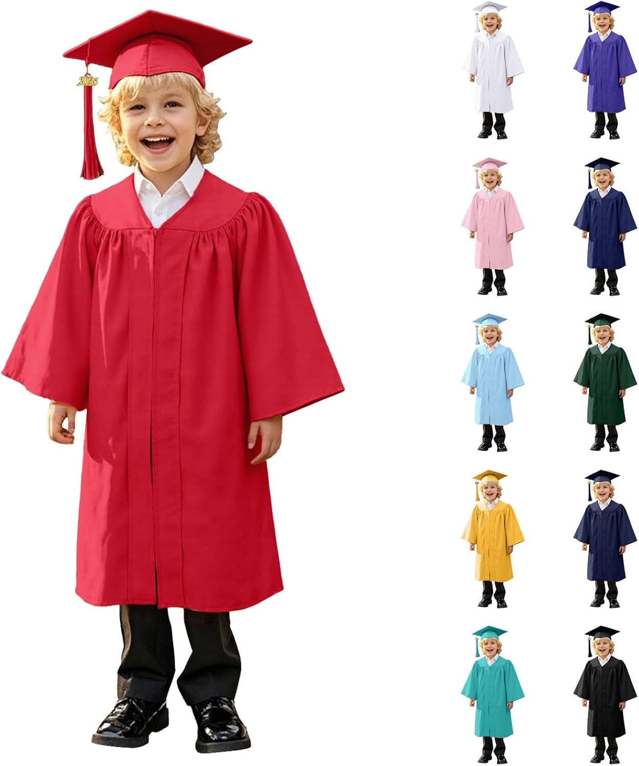 Bambini 2025 Toga Laurea con Cappello Tocco Prescolastico Scuola Materna Costume Unisex 11 colori