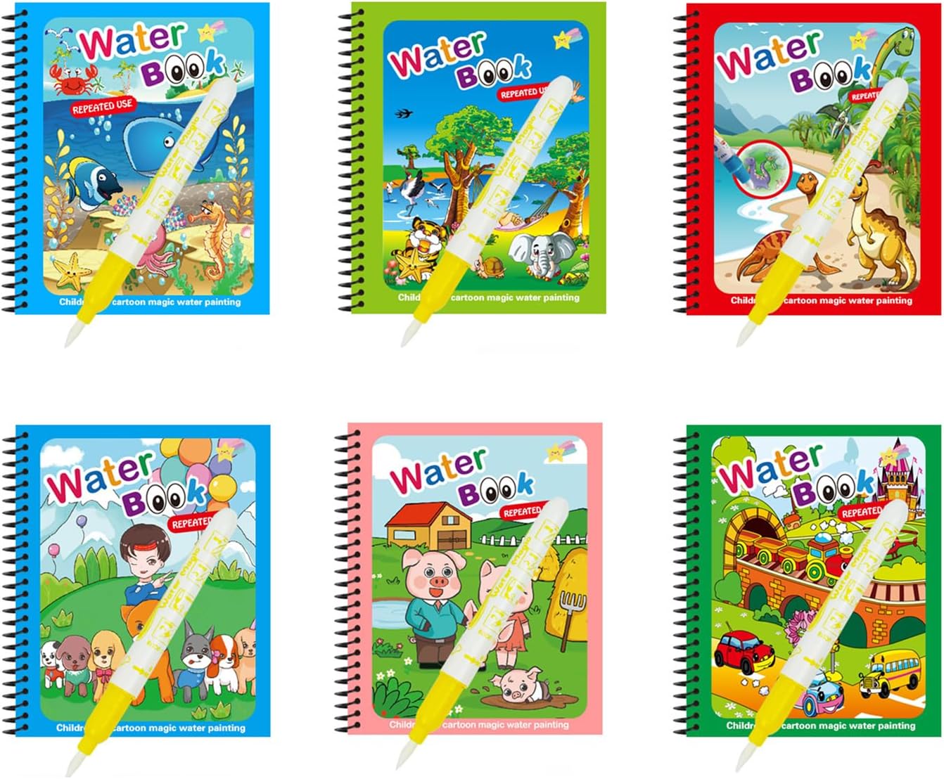 Libri da colorare ad acqua per bambini, offrendo creatività solo con acqua: i dipinti appaiono magicamente e svaniscono mentre le pagine si asciugano, permettendo divertimento Progettati per bambini di età compresa tra 1 e 5 anni, questi giocattoli educativi attirano bambini e bambini in età prescolare nel gioco sensoriale sviluppando la percezione del colore e le abilità motorie Molto adatto per viaggi, casa o aula utilizzare penne ad acquerello portatili non richiedono pennarelli o pulizia, mantenendo le superfici pulite durante i processi di colorazione creativa Materiali di carta sicuri, questi libri cancellabili presentano una tecnologia di rivelazione dei colori vivaci che scompare automaticamente quando è asciutta per un uso ripetuto Stimola l'immaginazione e l'interazione dei genitori con i bambini esplorano liberamente l'arte mentre gli adulti guidano l'apprendimento attraverso attività di colorazione riutilizzabili a base d'acqua