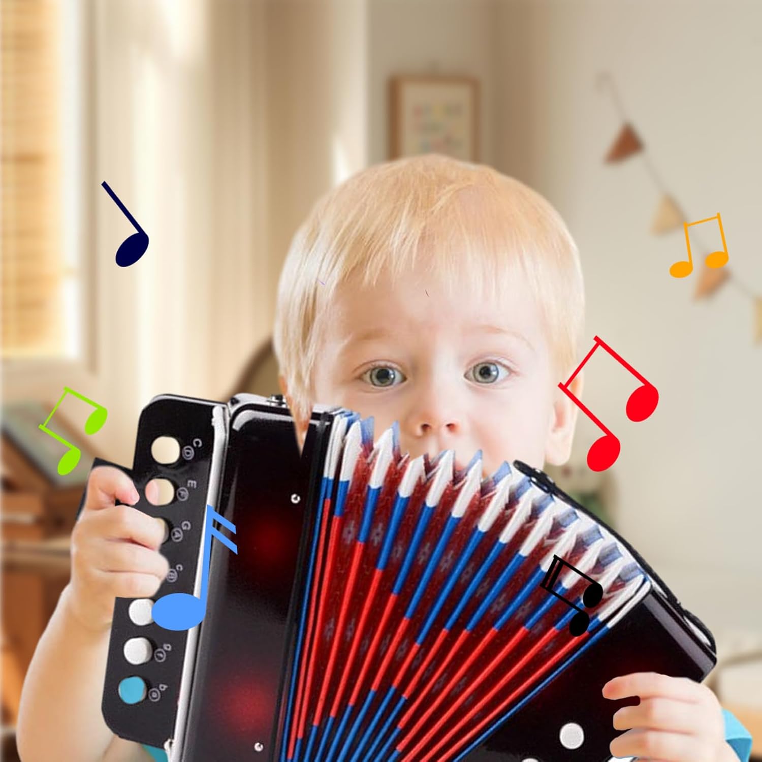facilmente: lascia volare la creatività di tuo figlio con il giocattolo per la fisarmonica per bambini. Questo strumento di facile utilizzo produce una varietà di suoni quando il bambino tira o spinge il soffietto e preme i tasti con le dita. Lavora per te: con il suo design a tubi ondulati sette pulsanti che possono soddisfare una varietà di esigenze musicali, questo giocattolo per la fisarmonica per bambini viene realizzato squisitamente. Spremi la fisarmonica e slacciata le fibbie della cintura per iniziare a giocare. Usa durabilmente: realizzato in resina ABS, il giocattolo per la fisarmonica per bambini è progettato per durare a lungo e proteggere la sicurezza dei tuoi bambini. È facile da giocare e adatto ai principianti. Design portatile: questo utile giocattolo per la fisarmonica per bambini, che si piega su entrambi i lati per un comodo spazio di trasporto e un minimo spazio di archiviazione, ti consente di goderti la musica all'esterno. Regalo : questo giocattolo per la fisarmonica per bambini è un grande regalo per bambini e principianti amanti della musica, in quanto può aiutarli a sviluppare i loro talenti musicali e addestrare il loro coordinazione occhio-mano.