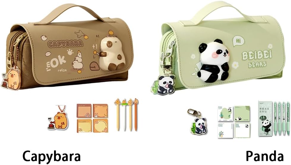 Set di cancelleria a forma di capibara: questo adorabile set include un astuccio capibara, un giocattolo a pressione con penna a sfera e molto altro, rendendolo un set regalo di cancelleria per bambini Per bambine e bambini: l'astuccio capibara e il set di cancelleria con il giocattolo a pressione con penna a sfera sono adatti sia a bambine che a bambini, portando gioia a tutti Un grazioso capibara e un panda: l'astuccio capibara presenta un grazioso e adorabile capibara/panda, aggiungendo divertimento e fascino alla tua collezione di cancelleria Strumento di decompressione: il giocattolo a pressione capibara incluso nel set di cancelleria può aiutare ad alleviare lo stress e fornire una divertente distrazione durante il lavoro o lo studio Scelta regalo: che sia per il ritorno a scuola o come regalo speciale, questo set di cancelleria capibara è un'idea regalo e deliziosa per gli amanti dei capibara di tutte le età