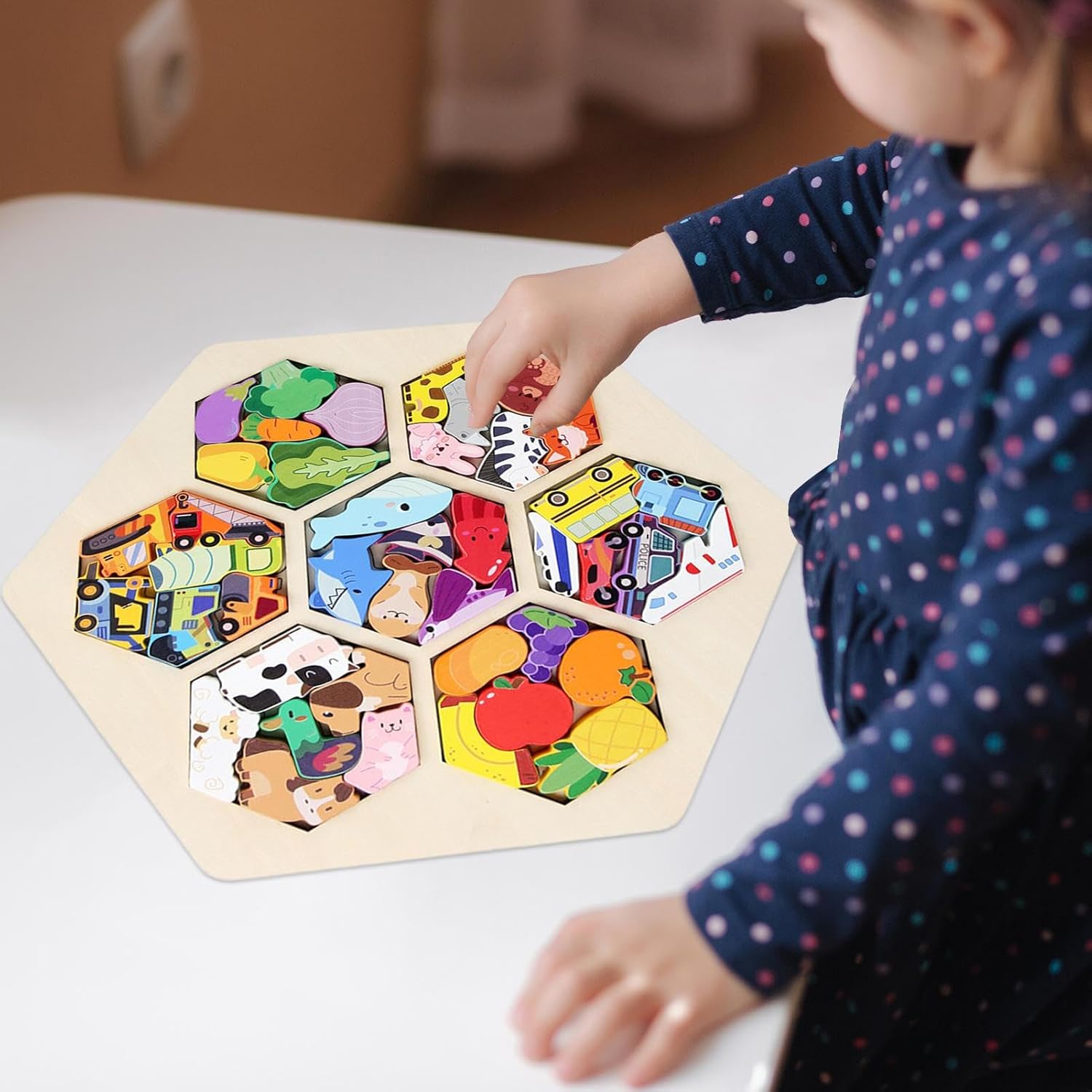 Non facili da rompere: i puzzle di blocco 'edilizia sono realizzati in legno con angoli arrotondati e superfici lisce per eliminare le bara, promuovendo un di gioco sicuro e divertente per i bambini Stimolare l'acquisizione a conoscenza: completando i puzzle con frutta, verdura, animali da allevamento e temi di trasporto, i bambini ampliano le loro capacità cognitive e accumulano nuove informazioni attraverso indizi visivi, promuovendo la crescita educativa Migliorare le capacità di coordinamento: migliorare efficacemente il coordinamento a mano oculare, i bambini richiedono precisione durante l'assemblaggio, ogni componente deve essere posizionato con precisione Funzioni multiple: i nostri enigmi di legno vanno oltre le tradizionali argomenti di apprendimento, con giochi che esplorano animali e frutta, verdure, animali da allevamento, trasporti, ecc. Migliora il familiare: impegnarsi nel processo del puzzle promuove stretto emotivo tra genitori e bambini, sostenendo la crescita del bambino e fornendo informazioni sul loro viaggio di sviluppo