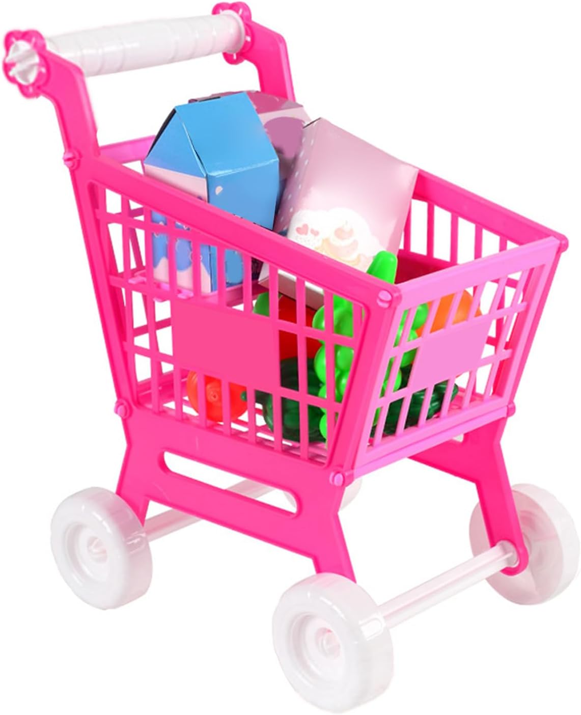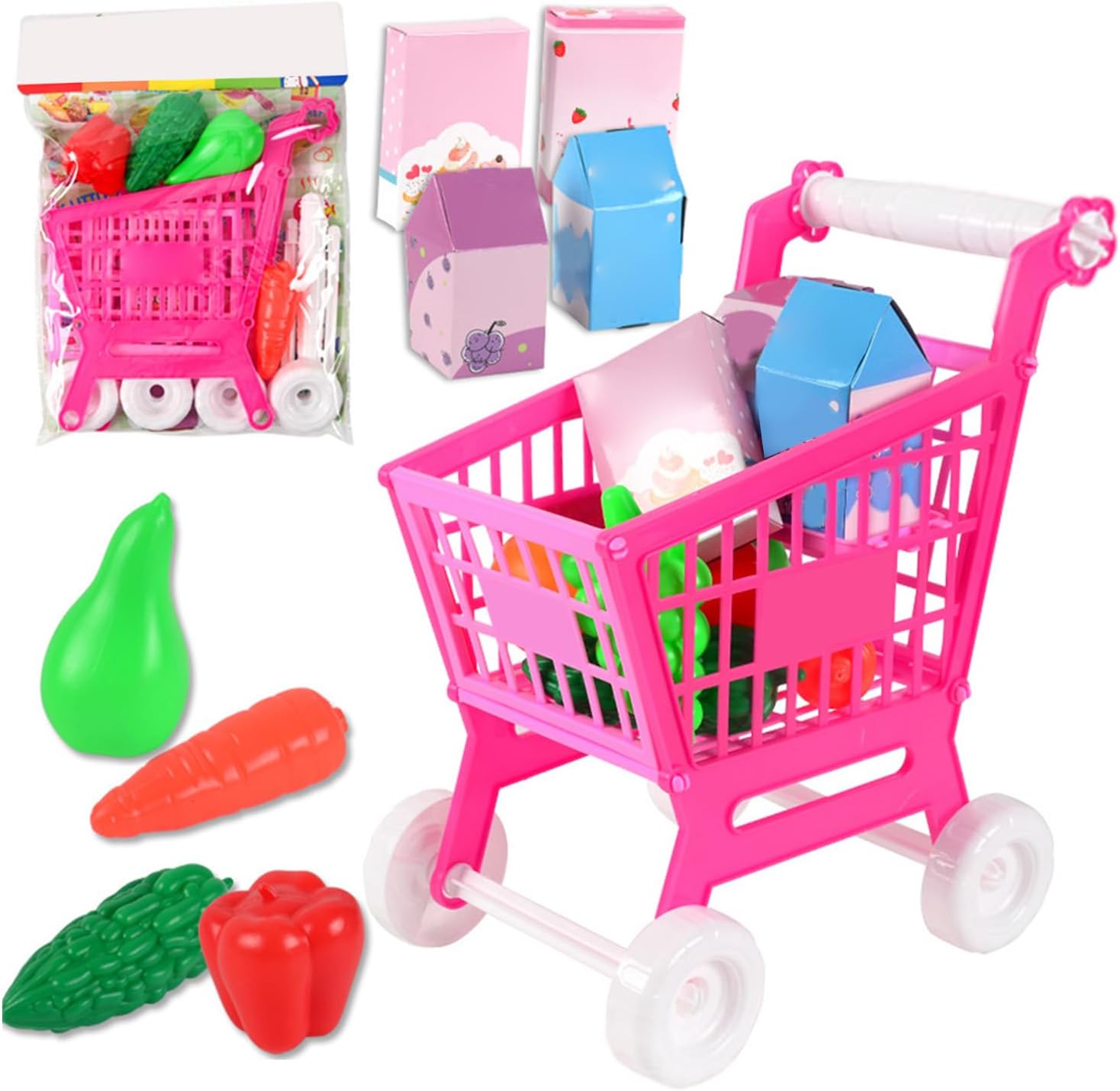 INTERAZIONE GENITORI-BAMBINI: i giocattoli del carrello della spesa possono essere utilizzati per bambini e genitori per giochi di ruolo, migliorando l'interazione e le emozioni familiari. CARINO: il design del carrello della spesa è carino, attira l'attenzione dei bambini e rende il gioco più interessante. SICURO E AFFIDABILE: il giocattolo del carrello della spesa è realizzato in materiale plastico con bordi e angoli lisci, non tossico e sicuro, consentendo ai bambini di giocare con maggiore sicurezza. MIGLIORARE LE ABILITÀ DEI PUZZLE: simulando scene di shopping, coltiva le capacità di puzzle e di pensiero logico dei bambini. ADDESTRAMENTO ALLA COORDINAZIONE OCCHIO-MANO: spingere il carrello della spesa aiuta i bambini a esercitare la coordinazione occhio-mano e le capacità di controllo motorio.