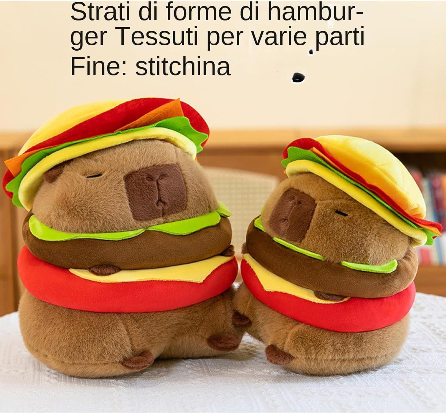 Design multifunzionale: il nostro peluche di Burger Capybara offre molto più di un semplice oggetto per la casa: il suo design multifunzionale offre morbido e comfort come di supporto per il sonno riposante Design distintivo per atmosfere giocose: migliora la tua peluche con questa peluche di Capybara Burger. Il suo design di hamburger amante del divertimento lo farà risaltare dal resto, con dettagli unici e un'espressione affascinante che aggiungerà un tocco giocoso a qualsiasi stanza Buddy eco-friendly Cuddle: il peluche di Capybara Burger è realizzato con materiale peluche di alta qualità per una sensazione ultra-morbida, con un design sicuro e di lunga durata. Il suo riempimento interno ecologico e innocuo garantisce un'esperienza tattile come nessun altro Creato di cura: sapientemente realizzato con attenzione ai dettagli, il nostro peluche di Burger Capybara presenta un design ben inserito e resistente all'usura che notevolmente un vero hamburger Capsybara. Non troverai una rappresentazione migliore Pronto per la presentazione: dai questo realistico Peludo di Capybara Burger ad amici, famiglie o amanti per compleanni o vacanze, esprimendo benedizioni e amore con un tocco unico