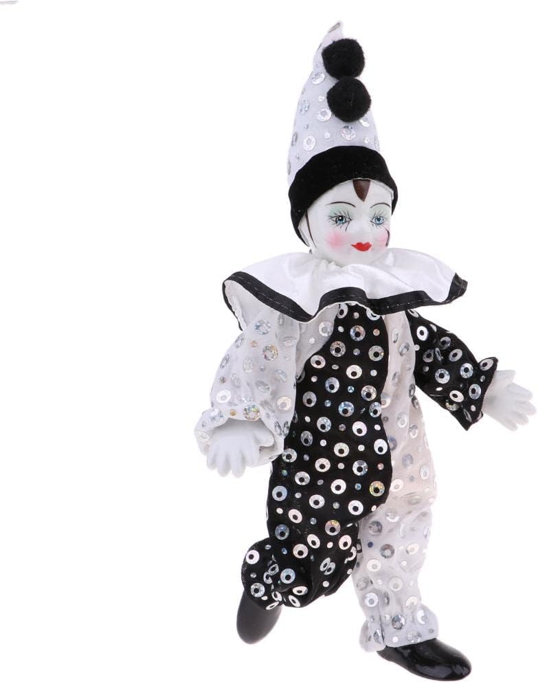 【Costruzione in porcellana e tessuto】 La testa e gli arti sono realizzati in porcellana, mentre il corpo è riempito con morbido cotone PP, offrendo un design delicato e robusto. Dettagli dipinti a mano: caratterizzato da un intricato trucco da clown e da un vivace costume da clown, che mette in mostra l'artigianato per un pezzo da esposizione unico. 【Display versatile】 Perfetta per sedersi o stare in piedi, questa bambola da clown da 9 pollici è un ornamento per tavoli natalizi, scrivanie o decorazioni per la casa. 【Regalo premuroso】: un'opzione regalo creativa e stravagante per bambini, adulti che amano le bambole da collezione o le decorazioni circensi. 【Dimensions】Measures 9.1 inches in height, with a shoulder width of 7.0 cm and an arm length of 17 cm, making it an eye-catching yet compact decorative item.