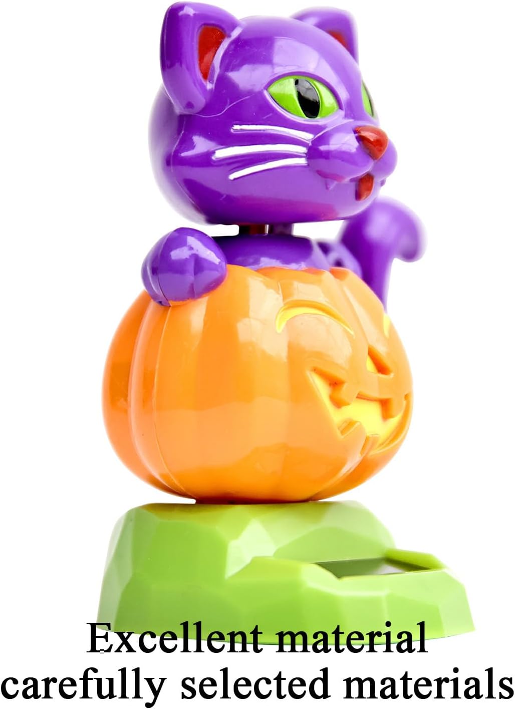 Ideale per decorazioni a tema: il movimento dinamico progettato con un accattivante motivo di zucca e gatto arricchirà gli ambienti festivi e offrirà un pezzo straordinario per composizioni decorative creative Chark danzante ad energia solare: elimina la necessità di batterie poiché si attiva dinamicamente alla luce e fornisce divertimento ininterrotto grazie al suo design fotovoltaico a risparmio energetico Compagno di viaggio sicuro: questo design consente di costruire il giocattolo con una base piatta per superfici lisce che rimangono sicure e resistono alle cadute e possono mantenere la stabilità durante il movimento Questo giocattolo compatto per la danza solare per la versatilità è ampiamente utilizzato: È è perfetto per decorare auto o scrivanie da studio. Facilità d'uso: per comodità, i giocattoli ED a energia solare si evolvono automaticamente quando esposti alla luce, eliminando assemblaggi o regolazioni e garantendo un processo di installazione senza soluzione di continuità e che fa risparmiare tempo