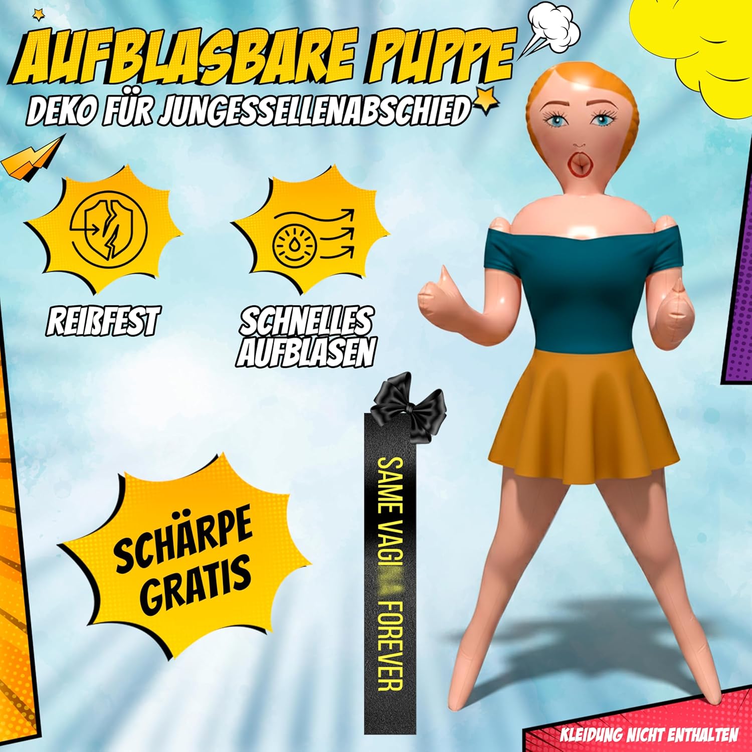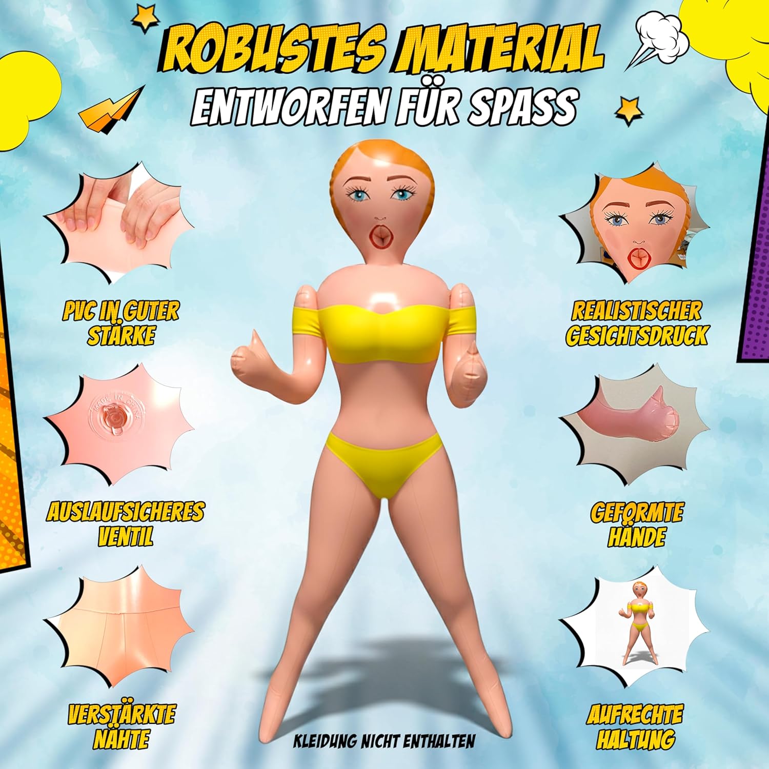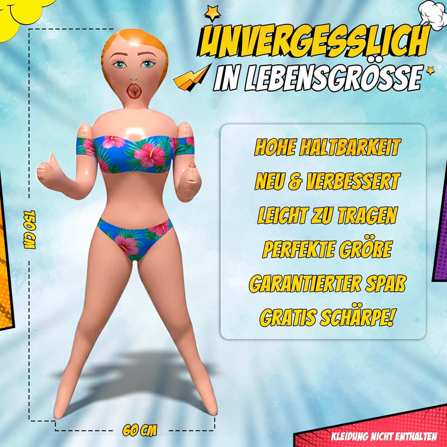 ✅ UN BANT AD OGNI INCONTRO: Non perdere l'occasione di avere la bambola gonfiabile più divertente per i tuoi eventi! ✅ DIMENSIONE REALE: Con un'altezza di ca. Alta 155 cm, questa bambola gonfiabile è perfetta per foto divertenti nel tuo photocall o cabina fotografica. 🎁 REGALO: UNA FANTASIA (160 cm x 9,5 cm) con un messaggio unico ✅ PROMESSA DI QUALITÀ E SODDISFAZIONE: Ci assicuriamo che ogni prodotto venga sottoposto a un rigoroso processo di test e controllo qualità prima di essere accuratamente imballato e spedito. Il nostro team di assistenza clienti dedicato è sempre disponibile per risolvere qualsiasi dubbio tu possa avere. Se per qualsiasi motivo non sei soddisfatto dell'acquisto, non esitare a contattarci per un rimborso completo o un cambio prodotto. La vostra soddisfazione è la nostra massima priorità.