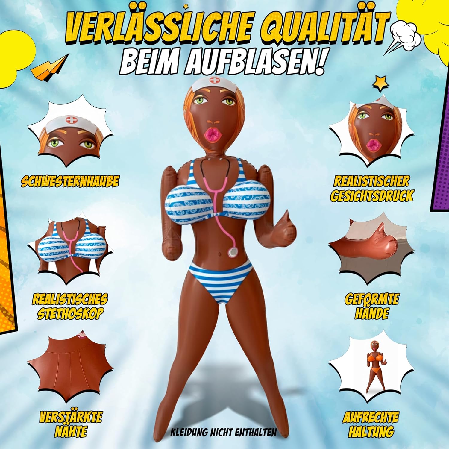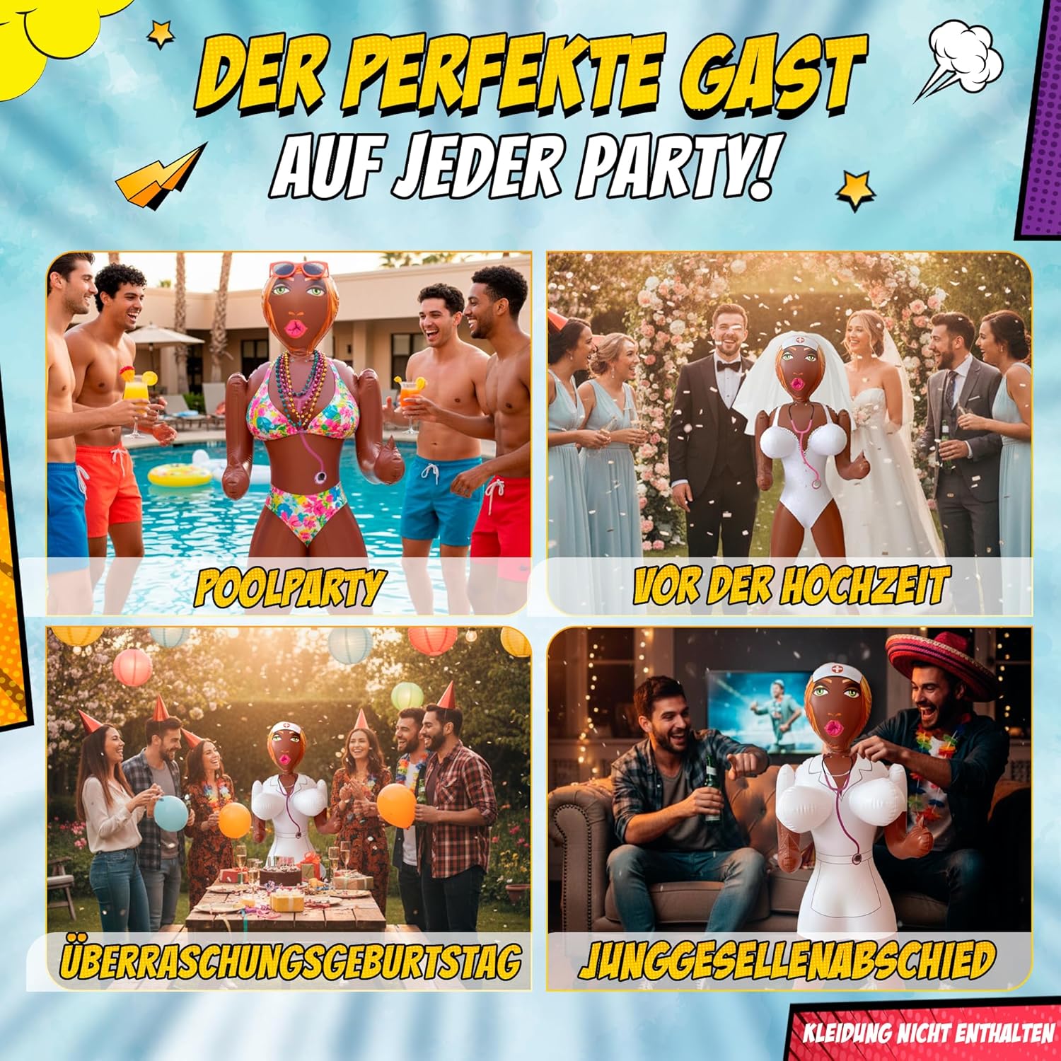 ✅ UN BANT AD OGNI INCONTRO: Non perdere l'occasione di avere la bambola gonfiabile più divertente per i tuoi eventi! ✅ DIMENSIONE REALE: Con un'altezza di ca. Alta 155 cm, questa bambola gonfiabile è perfetta per foto divertenti nel tuo photocall o cabina fotografica. 🎁 REGALO: UNA FANTASIA (160 cm x 9,5 cm) con un messaggio unico ✅ PROMESSA DI QUALITÀ E SODDISFAZIONE: Ci assicuriamo che ogni prodotto venga sottoposto a un rigoroso processo di test e controllo qualità prima di essere accuratamente imballato e spedito. Il nostro team di assistenza clienti dedicato è sempre disponibile per risolvere qualsiasi dubbio tu possa avere. Se per qualsiasi motivo non sei soddisfatto dell'acquisto, non esitare a contattarci per un rimborso completo o un cambio prodotto. La vostra soddisfazione è la nostra massima priorità.