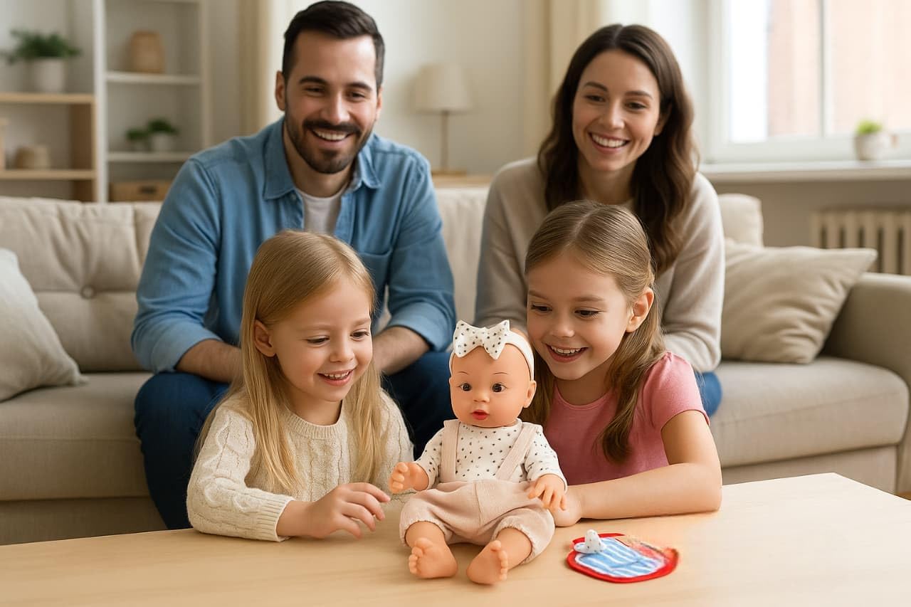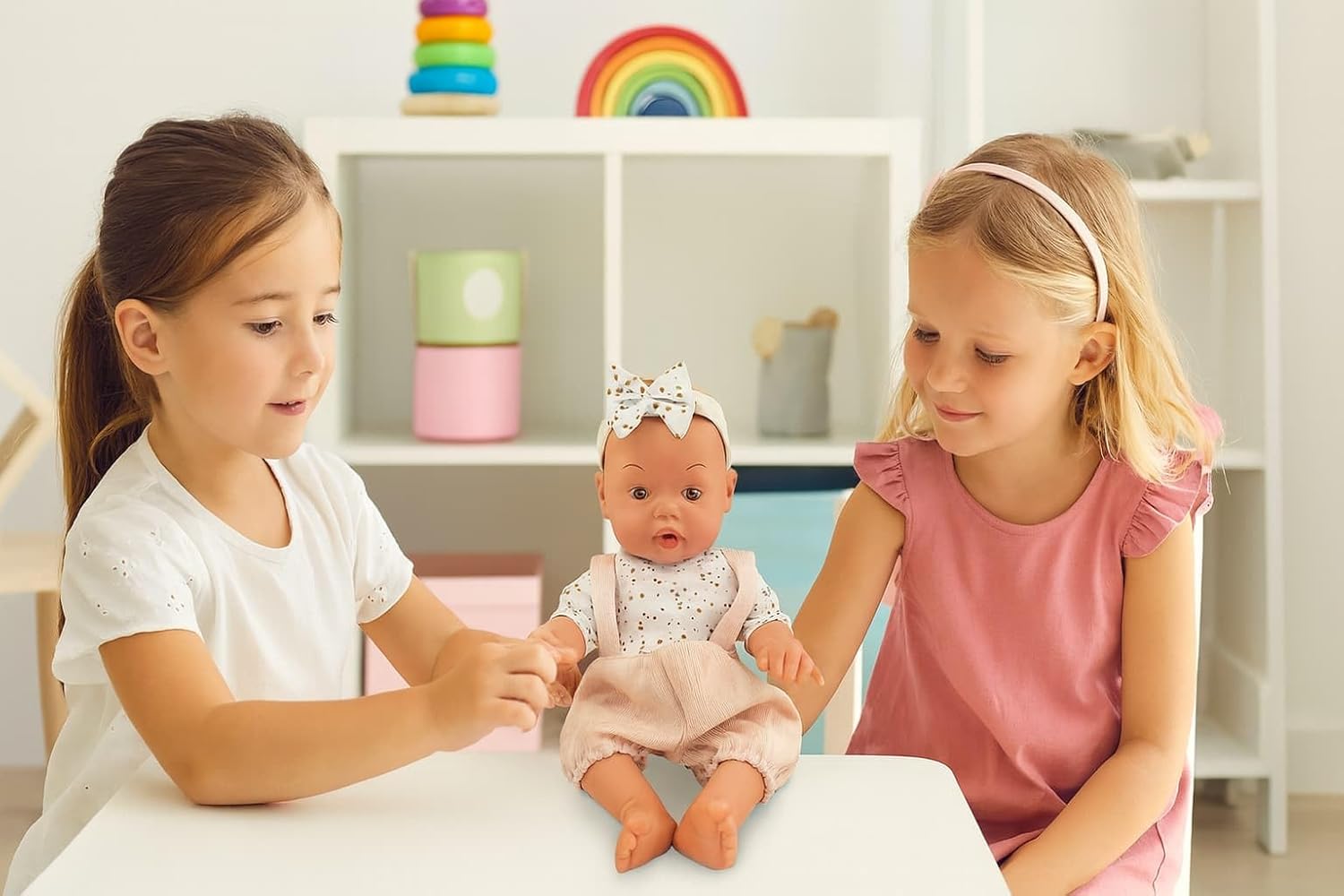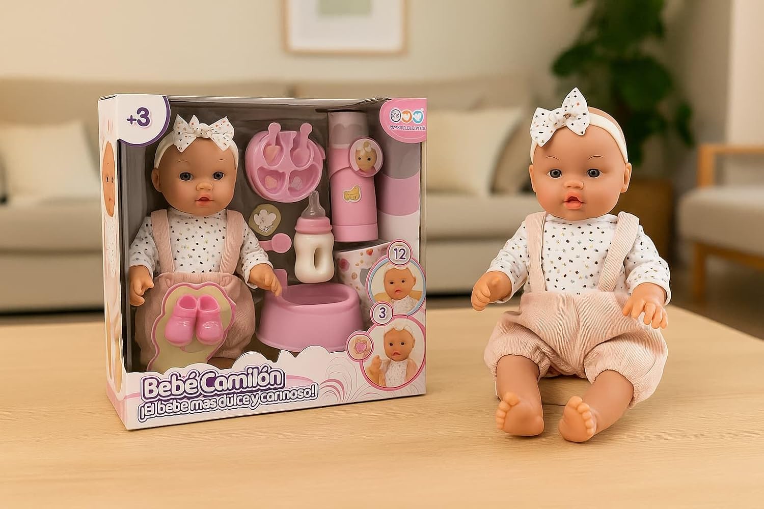 Bambola interattiva da 35 cm con fascia per capelli: questa adorabile bambola JugaToys è dotata di un design tenero e realistico, con fascia decorativa e corpo articolato, ideale per coccolare, vestire e prendersi cura. Bevi acqua e fai pipì come un vero bambino: riempi la bottiglia inclusa, dagli da bere e guarda come fa pipì. Una funzione che stimola il gioco dell'imitazione e la responsabilità fin dalla tenera età. Include accessori e 12 suoni realistici: il set contiene un biberon, un vasetto, un ciuccio e altri accessori per la cura quotidiana. La bambola emette anche 12 suoni diversi, come ridere, piangere o chiamare la mamma. Incoraggia il gioco simbolico e l'empatia: ideale per lo sviluppo emotivo e sociale di ragazzi e ragazze. Giocare a prendersi cura di un bambino rafforza l’immaginazione, l’affettività e l’autostima. Regalo educativo perfetto a partire dai 3 anni: una bambola completa, interattiva e sicura, ideale per compleanni, Natale o come primo giocattolo per neonati. Realizzato con materiali durevoli e dettagli accurati.