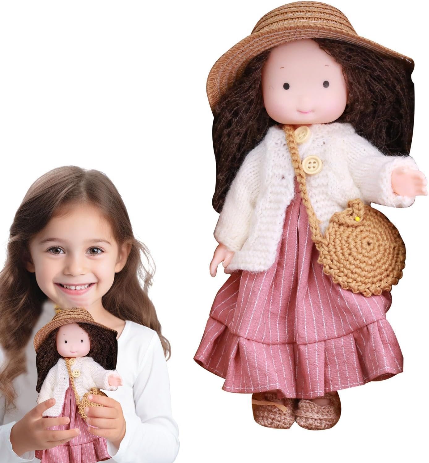 Adorabile tema dei cartoni animati: con bellissimi accessori, tutti i vestiti e gli accessori per le bambole sono rimovibili e intercambiabili, rendendoli più interattivi e interessanti per i tuoi bambini che indossano un vestito colorato. Uso a lungo termine: con una faccia in ABS, questa bambola non è facile da sbiadire, rompersi o deformare durante l'uso a lungo termine e viene fornita con abiti morbidi e comodi. Decora la tua casa: questa bambola di pezza per ragazza aggiungerà un tocco squisito a qualsiasi ambiente. Non può essere utilizzato solo come giocattolo per bambini, ma anche come decorazione squisita per la casa, l'auto, il divano, la libreria, il comodino e altro ancora. Comodo da trasportare: guarda i tuoi bambini divertirsi molto con questa bambola di pezza per ragazza. Il suo design leggero e compatto lo rende adatto al trasporto dei bambini ed è ideale per il campeggio e le attività all'aperto. Regalo unico: porta un sorriso ad amici e parenti con questa adorabile bambola di pezza. Con il suo design adorabile e l'aspetto affascinante, è il regalo perfetto per amici e parenti che conquisterà sicuramente il loro affetto e porterà gioia nella loro giornata