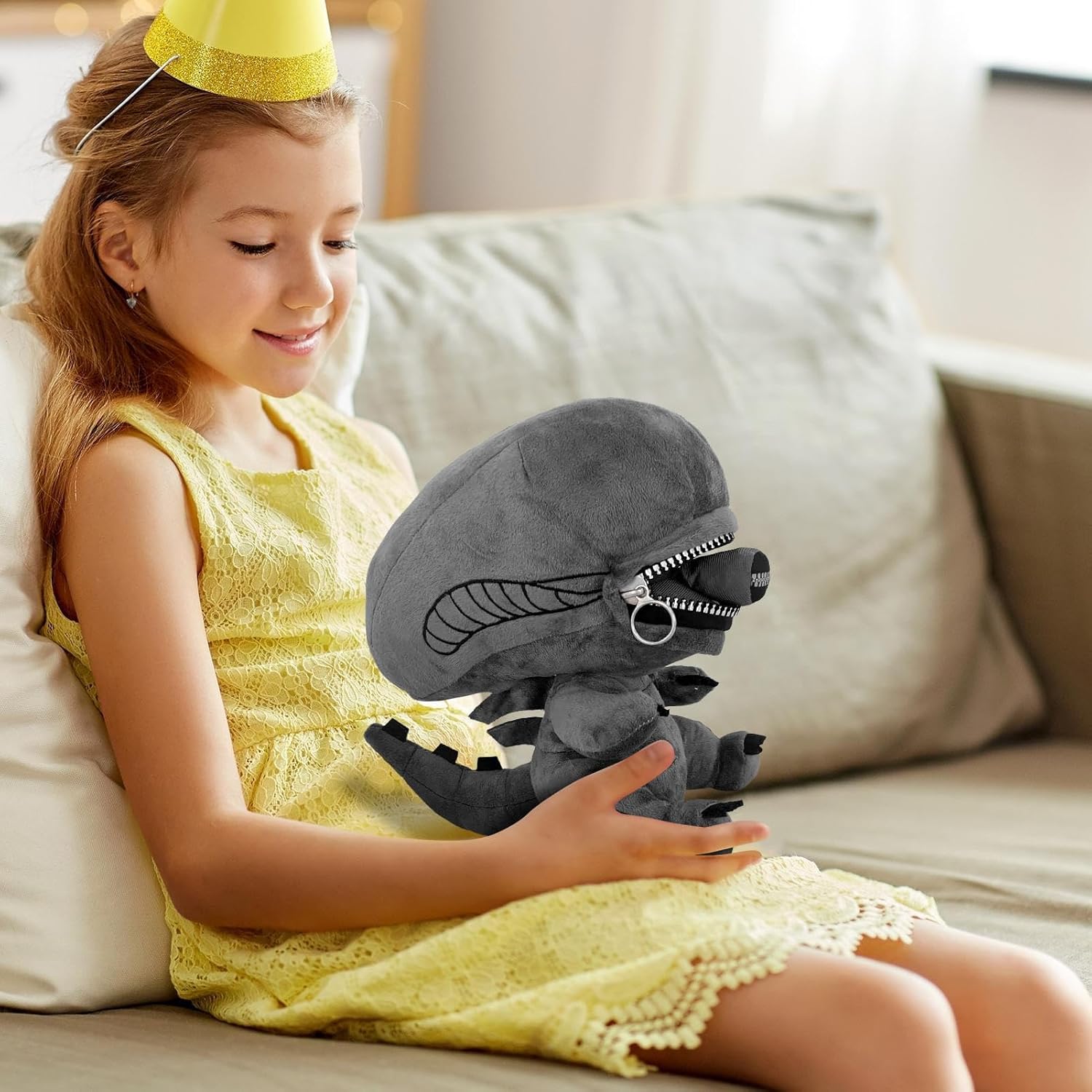 Design ideale per viaggiare: adatto sia per la decorazione di interni che per le gite all'aperto. La portabilità conveniente garantisce un utilizzo versatile in qualsiasi luogo Dettagli decorativi ispirati al film: combina un tocco cinematografico con un valore decorativo. Il peluche sottolinea i dettagli più raffinati ed è ideale per creare collezioni o come elegante accessorio per la casa per gli appassionati di cinema. Ottimizzazione del divertimento: focalizzato sul piacere interattivo grazie al pratico design della bocca con cerniera, offre supporto per giochi di ruolo e opzioni di presentazione creative per giocattoli personalizzati. Resistenza delicata: il materiale morbido e flessibile resiste alla deformazione, offre una resistenza equilibrata e una sensazione raffinata per un'esperienza di gioco morbida per grandi e piccini Personaggio dettagliato: dona eleganza giocosa a eventi e accessori per la casa. Il peluche di alta qualità unisce fascino a tema con un uso versatile per feste e momenti speciali a sorpresa.