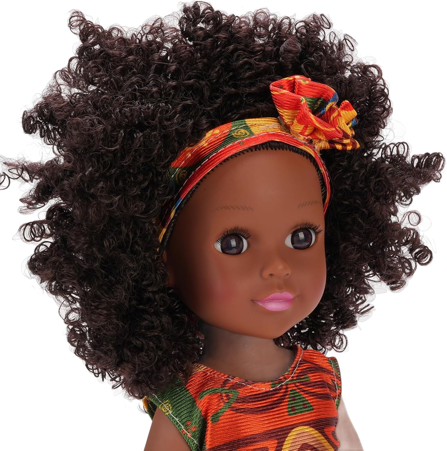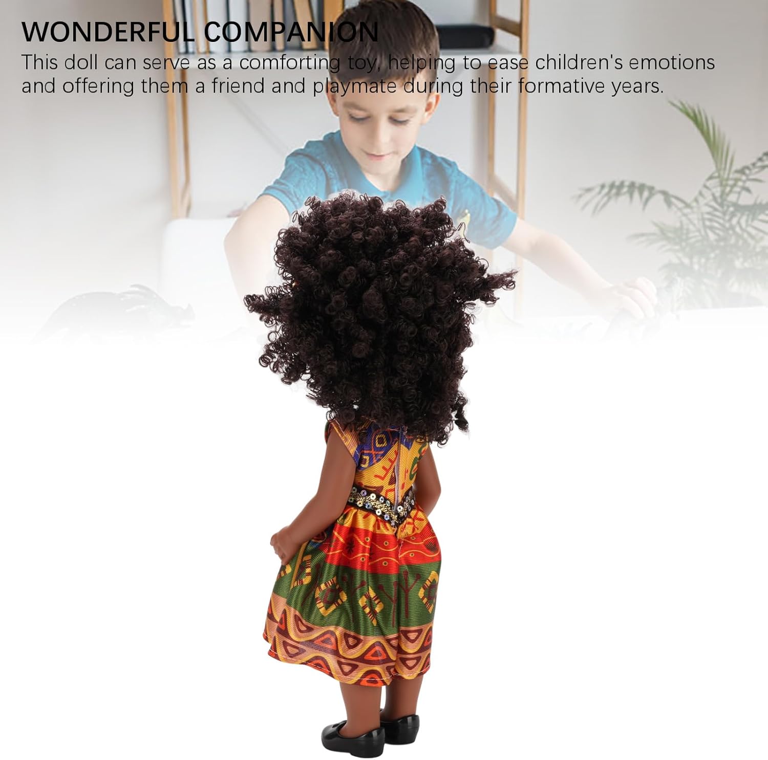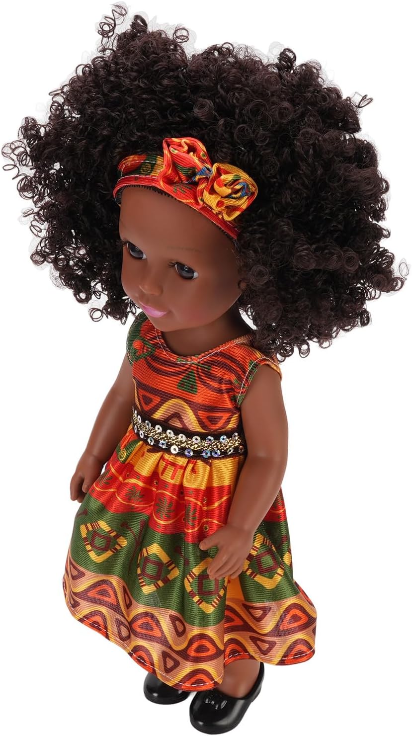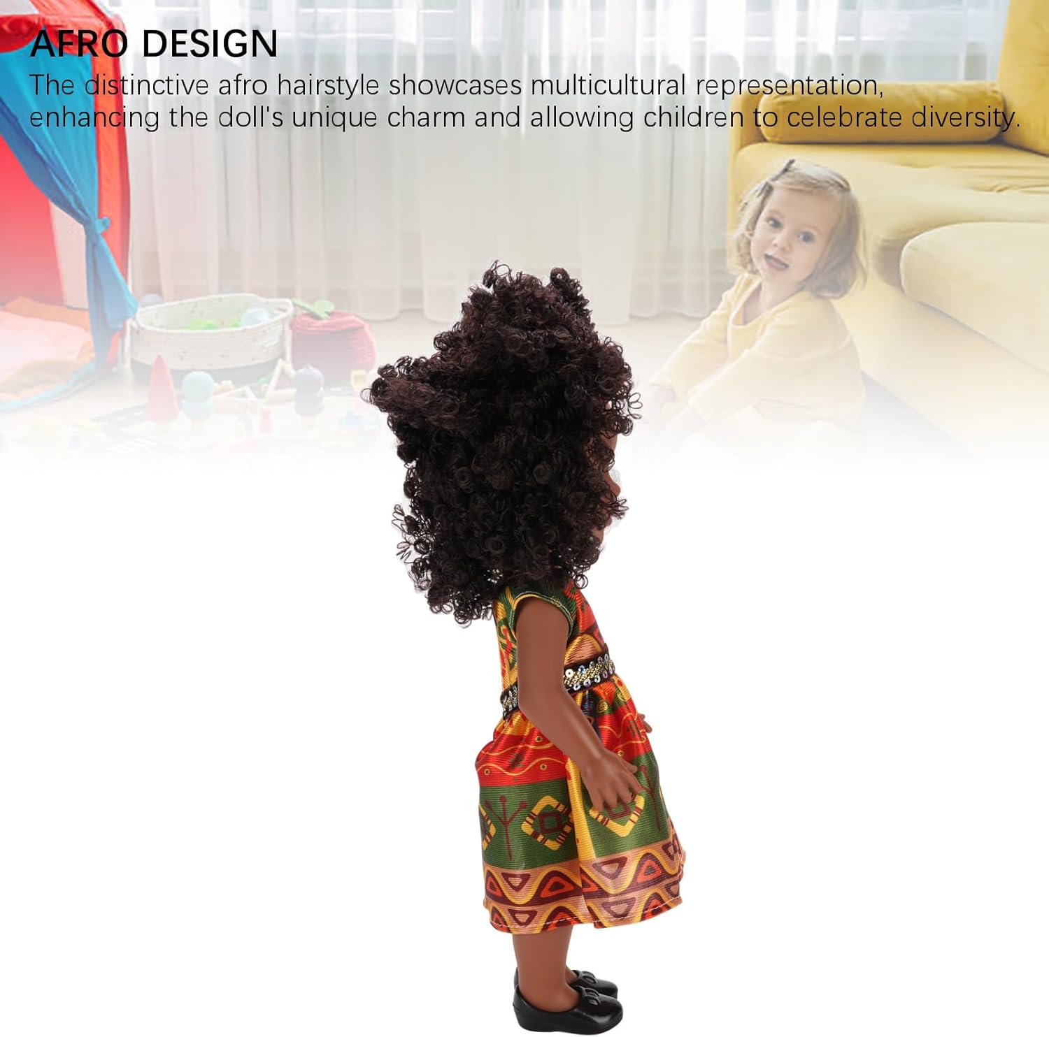 [DELIZIOSO DA VESTIRE] Scatena la creatività di tuo figlio con una varietà di abiti eleganti per questa bambola nera. [CELEBRA LA DIVERSITÀ] Abbraccia la rappresentazione multiculturale con l'acconciatura afro, insegnando ai bambini l'inclusione. [MATERIALE SICURO E DUREVOLE] Realizzata in plastica morbida, questa bambola è robusta e per infinite sessioni di gioco. [PER VIAGGIO] Le dimensioni di 14 pollici rendono questa bambola facile da trasportare, ideale per giocare a casa o in viaggio. [SOSTEGNO EMOZIONALE] Offrendo comfort e compagnia, questa bambola è un giocattolo confortante per i bambini durante il gioco.