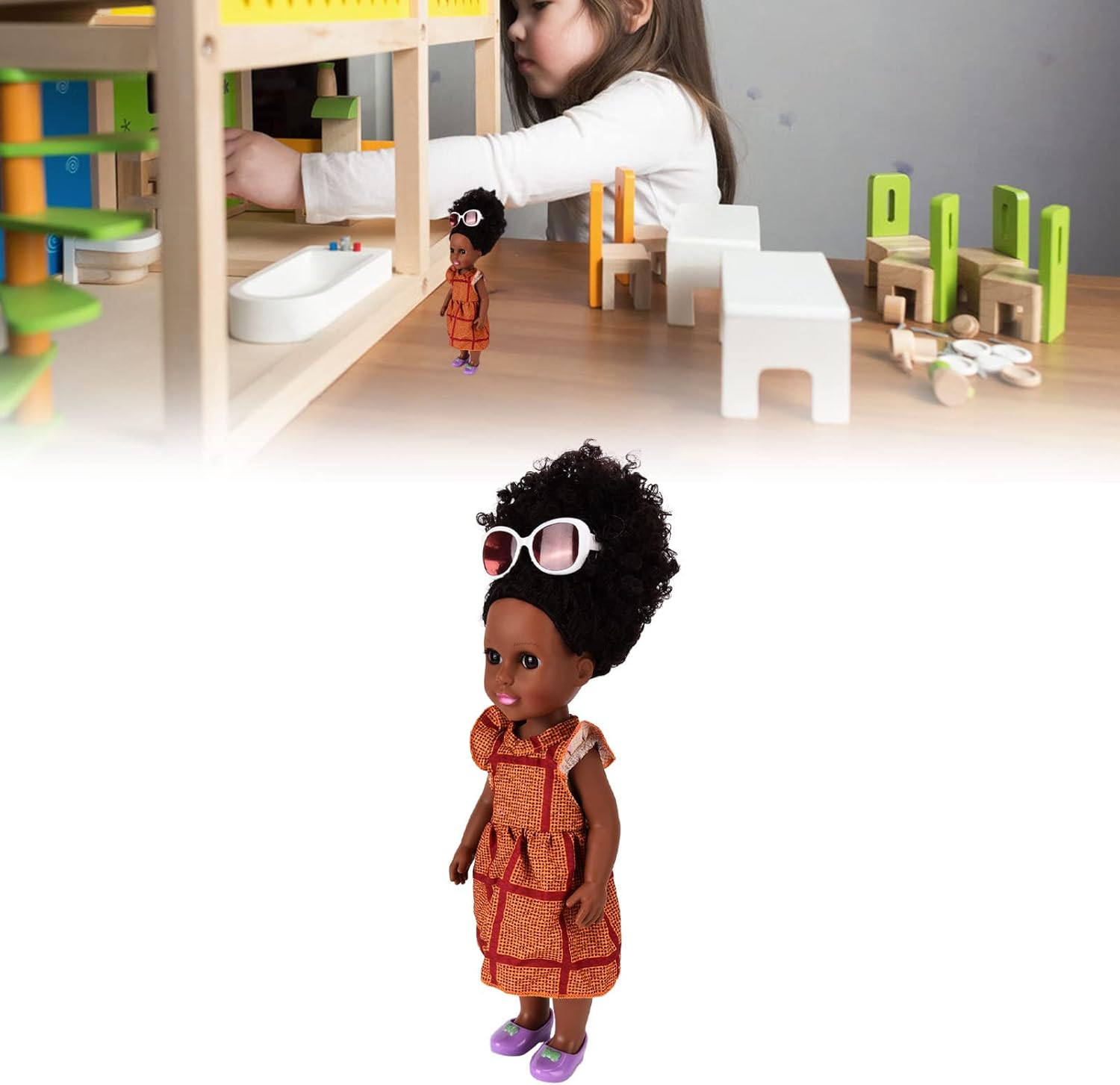 [Aspetto realistico]: con capelli ricci carini e pelle morbida nera, questa bambola ha un aspetto realistico e un viso adorabile, offrendo una buona esperienza tattile per i bambini. [Multifunzionale]: la testa e gli arti della bambola sono rotabili, permettendole di sedersi o sdraiarsi. I vestiti staccabili e lavabili consentono la personalizzazione con altri abiti. [Ottima scelta ]: Ideale come regali di compleanno, nuovo anno o festa, questa bambola incoraggia il gioco fantasioso e l'espressione emotiva nei bambini, promuovendo la gentilezza e la creatività. [Progettato per lo sviluppo]: la bambola nera promuove un mondo di divertimento, creatività e immaginazione per i bambini, aiutandoli a esprimere emozioni e sviluppare tratti caratteriali. [Companion]: scegli questa bambola nera per accompagnare il tuo bambino in gioco e l'ora di andare a letto, promuovendo un legame mentre vestono la bambola in base alle loro preferenze.