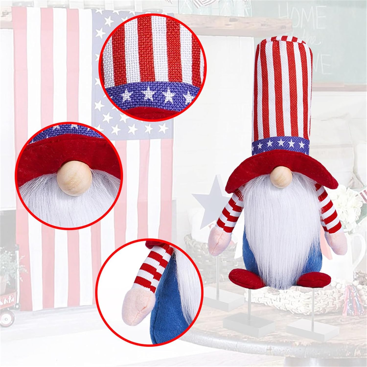 Celebrate la Giornata dei patriottici con questa notevole decorazione delle bambole, featurings un motivo unico e dettagli raffinati Craft dal materiale stoffa, questa bambola gnomi non è anche morbida e confortevole Embracs Independence con questa bambola, per durare e perfetta per addimenti Unici tocchi nel tuo spazio Visualizza questa bambola accattivante sullo scaffale, scrivania per aggiungere tocchi unici alla tua stanza Perfetto per l'individuo interessato alla degli Stati questa bambola aggiunge eleganti tocco a qualsiasi decoro