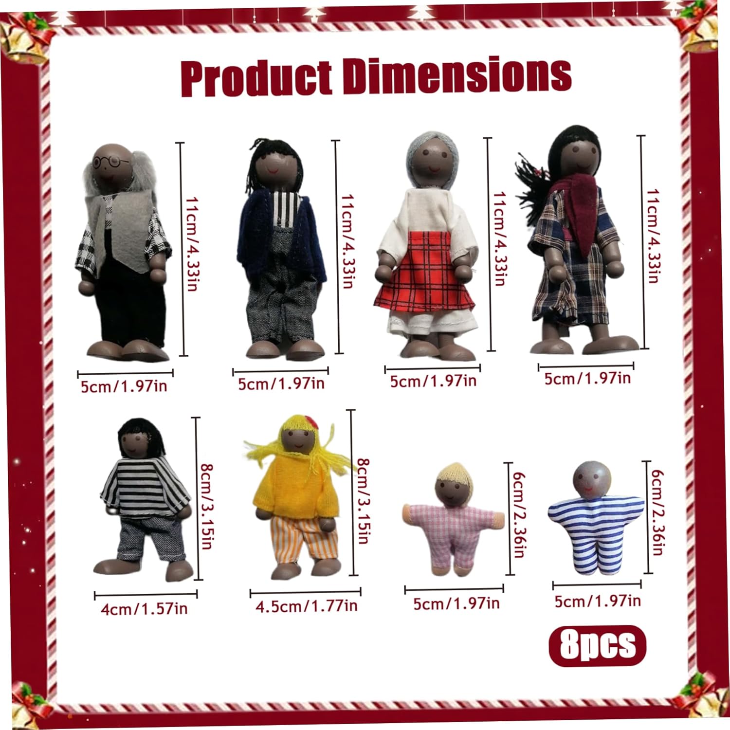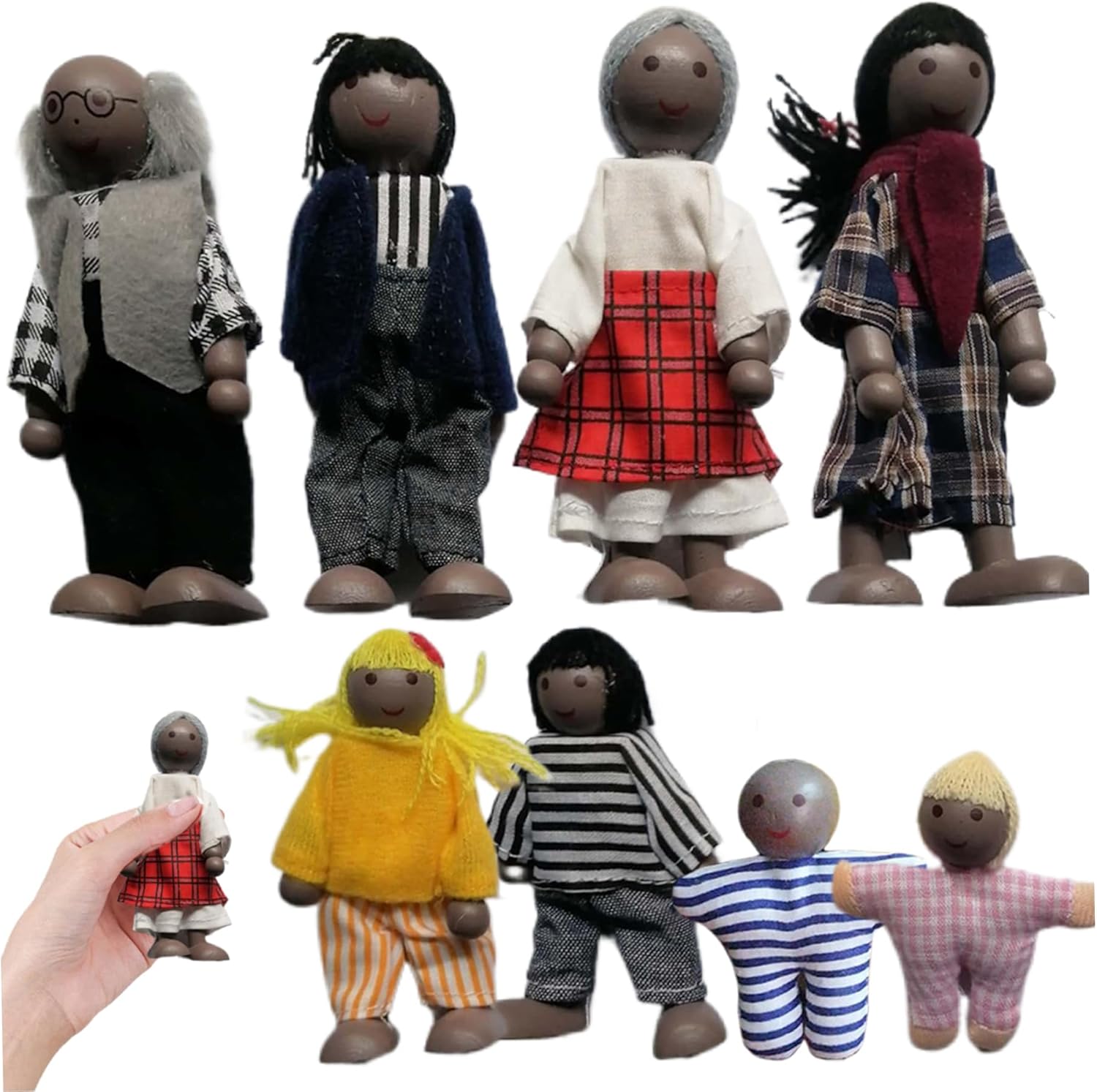 Set di famiglie completo: questo set di persone delle case delle bambole comprende 8 figure affascinanti che rappresentano un completo non gestitore familiare, genitori, bambini e due adorabili neonati che assumono infiniti giochi fantasiosi per bambini..È l'aggiunta perfetta a qualsiasi casa delle bambole, arricchendo la narrazione e le attività di gioco di ruolo! Costruzione in legno: realizzate in legno di qualità, queste figure sono costruite per durare, garantendo che possano resistere all'entusiasmo del tempo di gioco..Il design robusto li rende sicuri per bambini e bambini piccoli, fornendo tranquillità ai genitori durante il gioco. Posibile e interattiva: ogni bambola di legno è progettata per essere posizionata, consentendo ai più piccoli di creare scene e interazioni dinamiche tra i personaggi..Questa funzionalità migliora il gioco finto, offrendo numerose opportunità di creatività e coinvolgimento nelle avventure di narrazione. Perfetto per ogni occasione: queste deliziose persone delle bambole fanno eccellenti regali per compleanni, Natale o qualsiasi occasione speciale..Sono un modo meraviglioso per ispirare il gioco fantasioso in ragazzi e ragazze, rendendoli un accessorio ideale per espandere qualsiasi collezione di case delle bambole. Design elegante e colorato: le figure sono magnificamente dipinte con colori non tossici, rendendo visivamente attraenti per i bambini e una decorazione perfetta per qualsiasi casa delle bambole..I loro volti carini e amichevoli invitano il gioco fantasioso e migliorano l'estetica di qualsiasi ambiente di gioco.